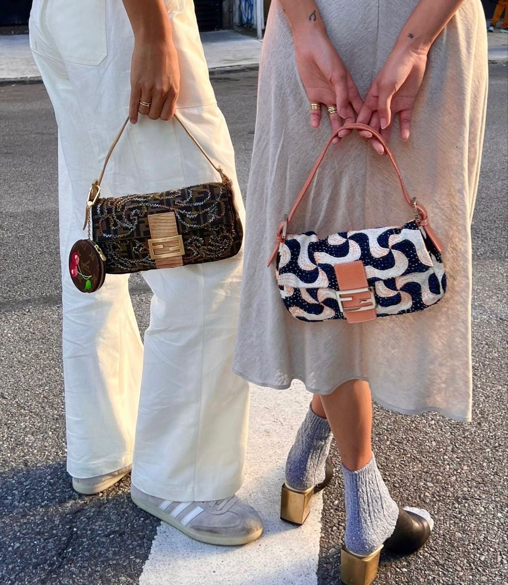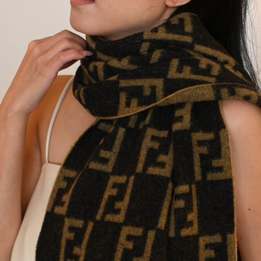 The iconic Fendi Zucca Baguette gets a cozy twist in soft wool with a moody gray hue. Finished with a bold black leather buckle and sleek silver hardware.