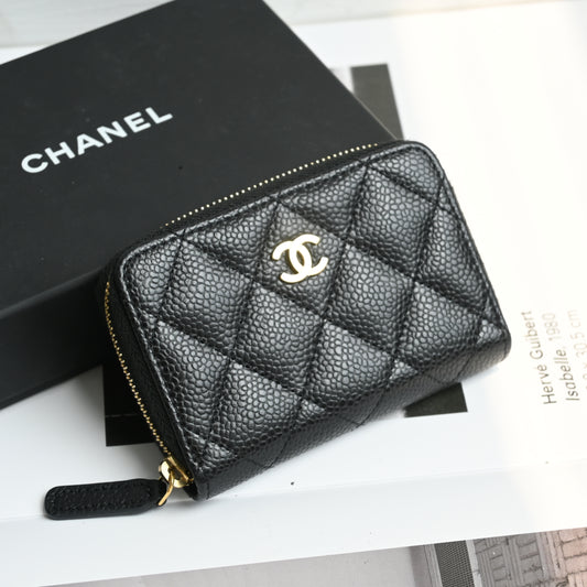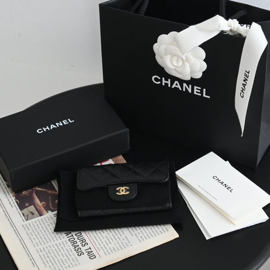 Chanel Matelasse Caviar Skin Card Case Black GHW