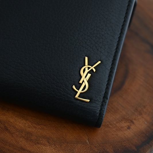 Yves Saint Laurent Black Leather Tiny Cassandre Bifold Wallet