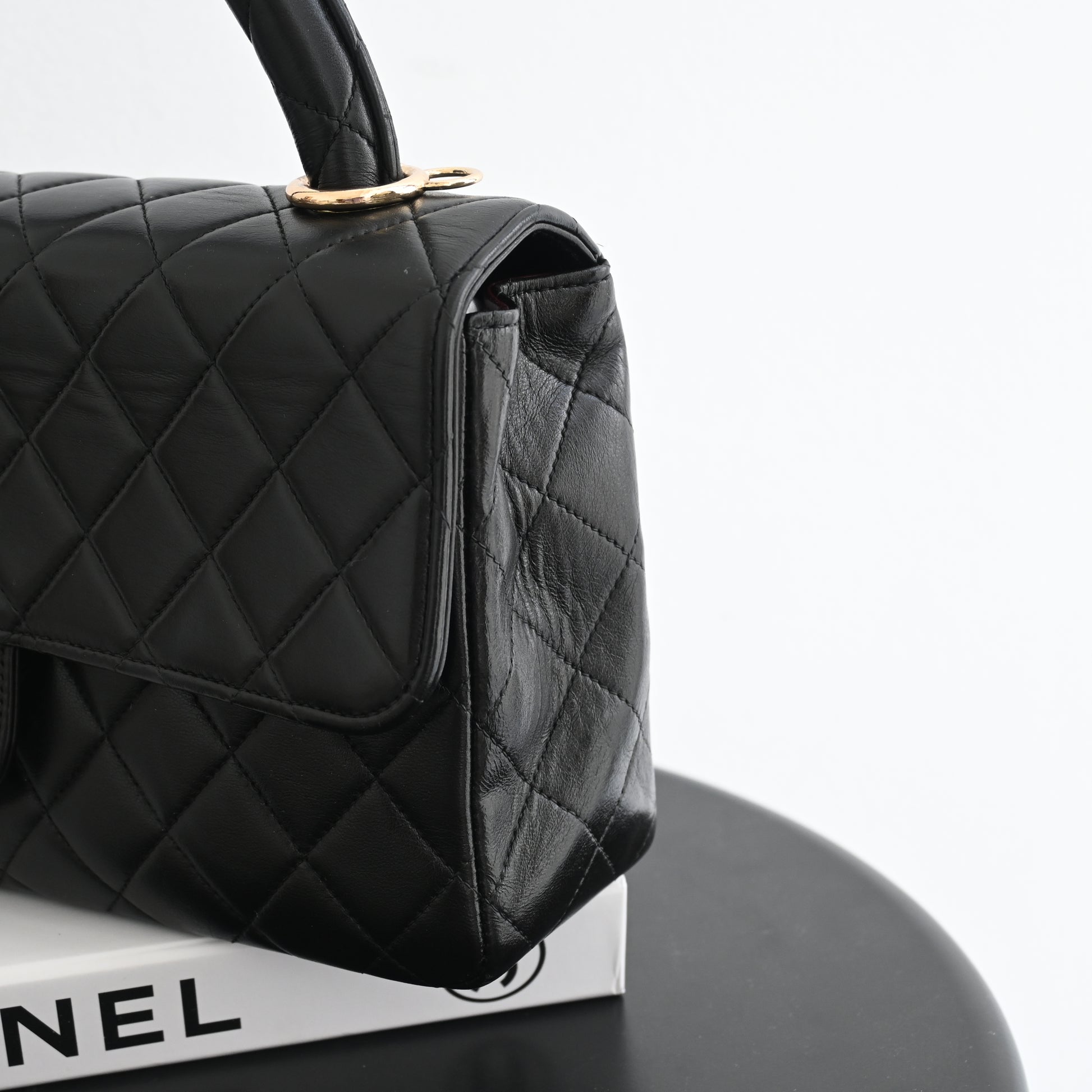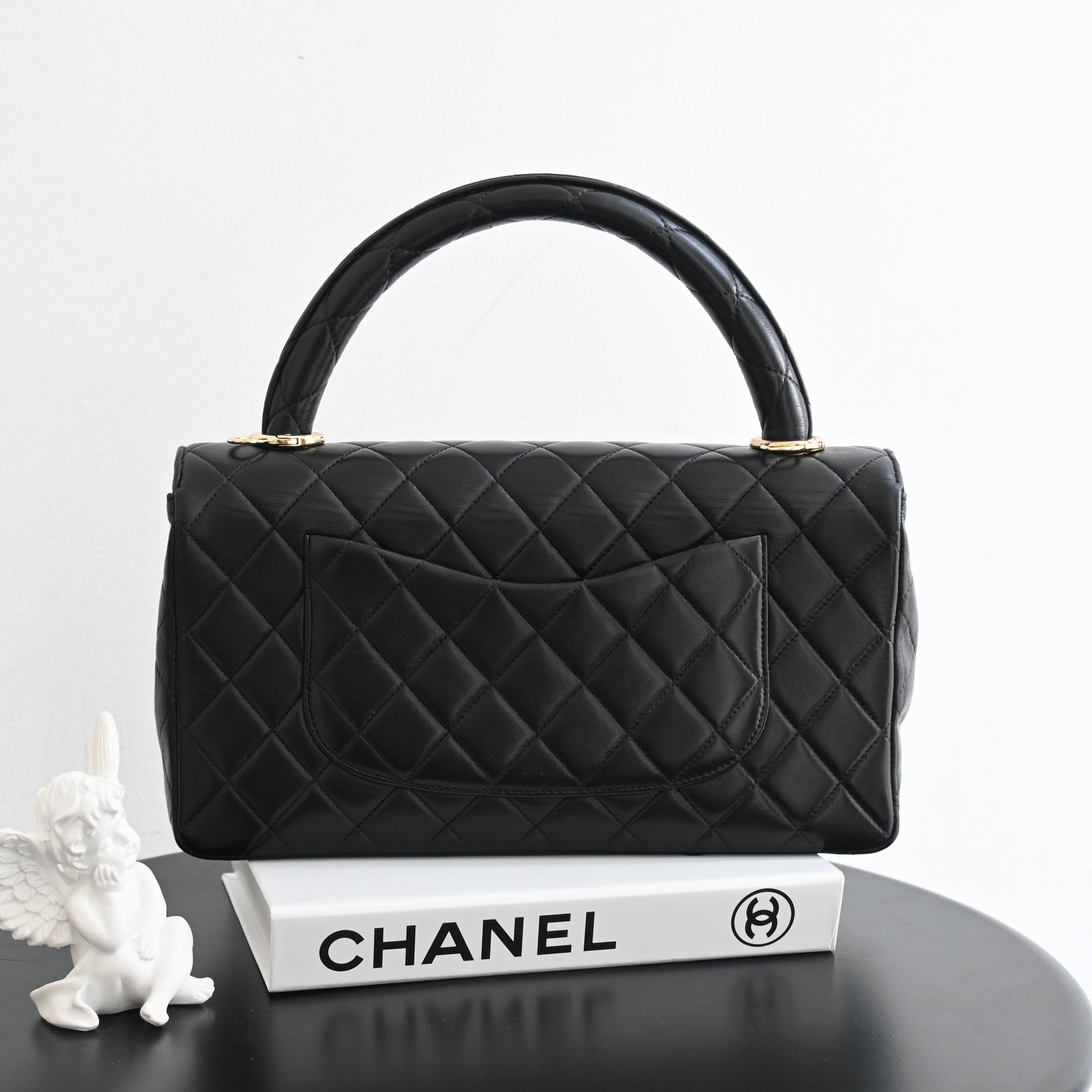 A collector’s dream ! Parisian chic in one grab—this Chanel top handle bag is all about those timeless diamond quilts, glossy black leather, and 24k gold-plated CC turn-lock. A classic silhouette with extra runway attitude.
