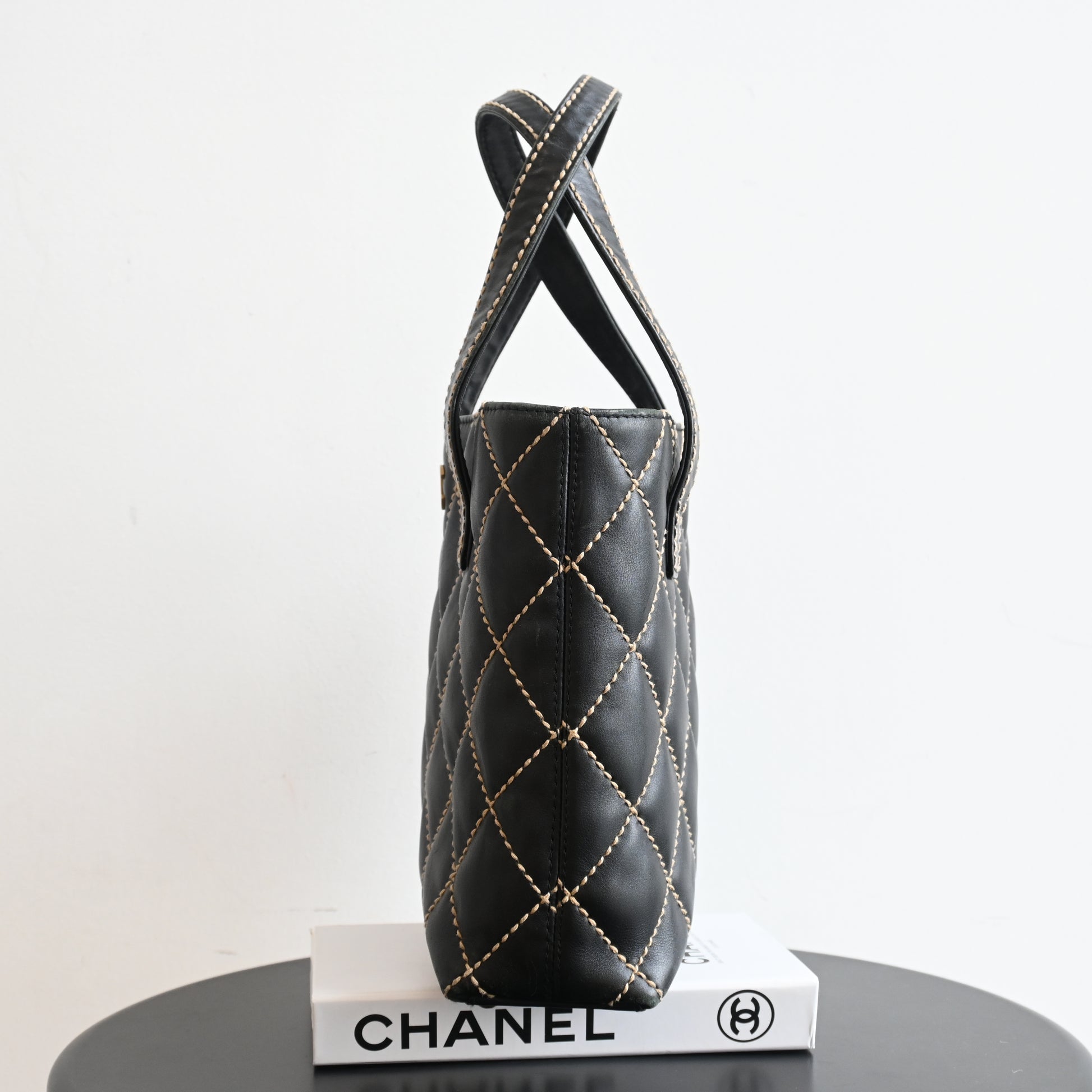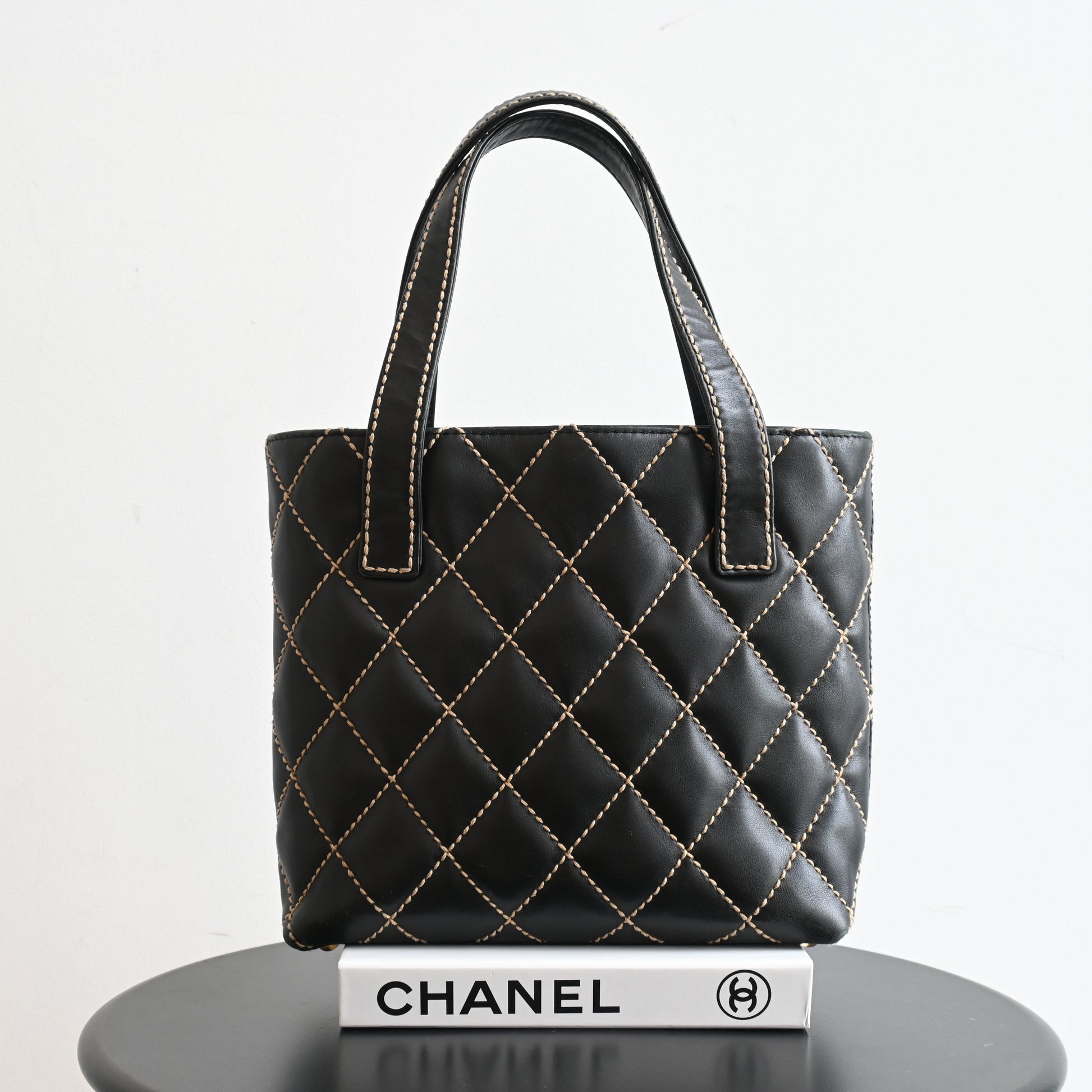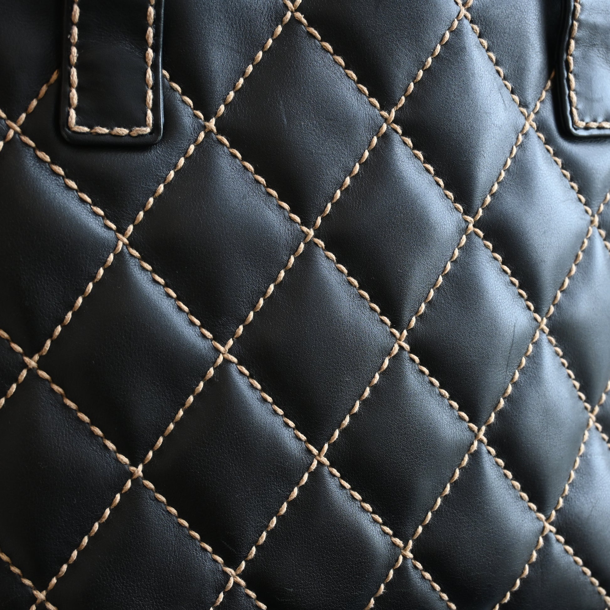 Instead of Chanel’s classic quilted pattern, this tote is defined by “wild” or contrast stitching—a bold diamond across the leather exterior that gives it a unique artisanal look and spacious design makes it practical as a daily bag for work or travel!