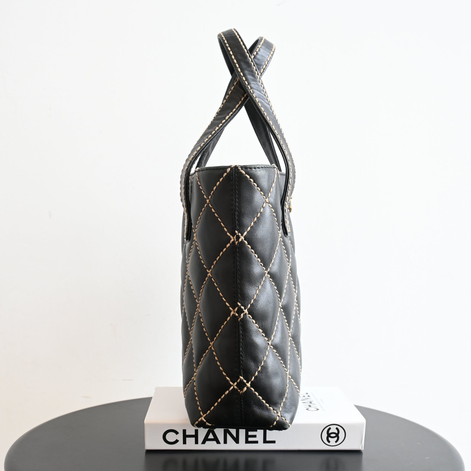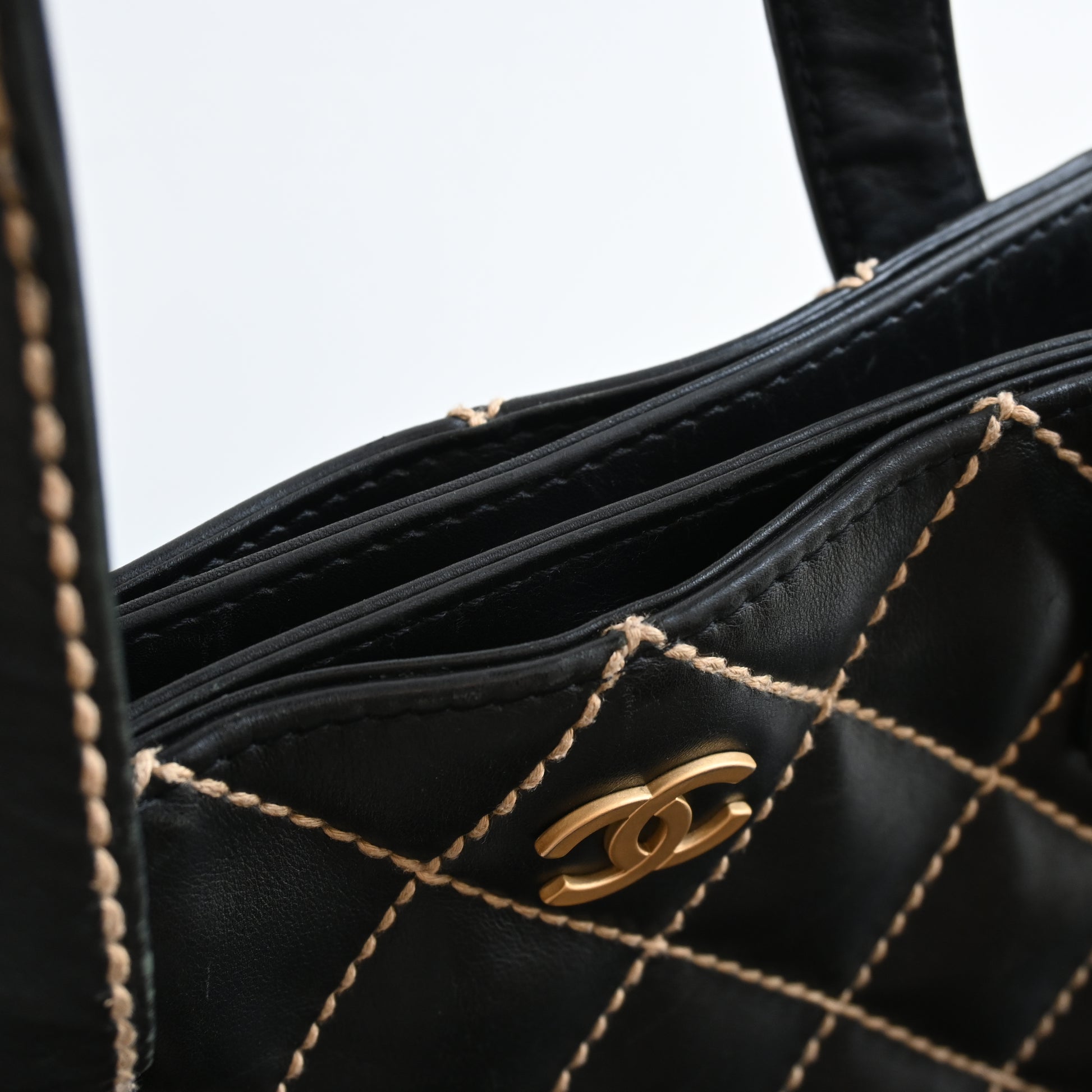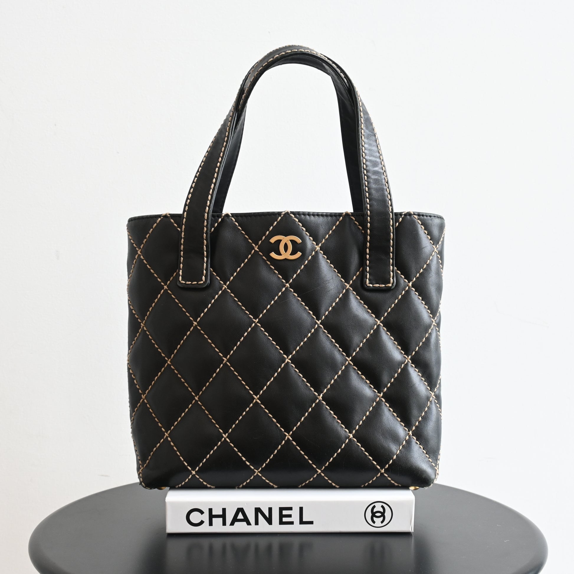 Instead of Chanel’s classic quilted pattern, this tote is defined by “wild” or contrast stitching—a bold diamond across the leather exterior that gives it a unique artisanal look and spacious design makes it practical as a daily bag for work or travel!