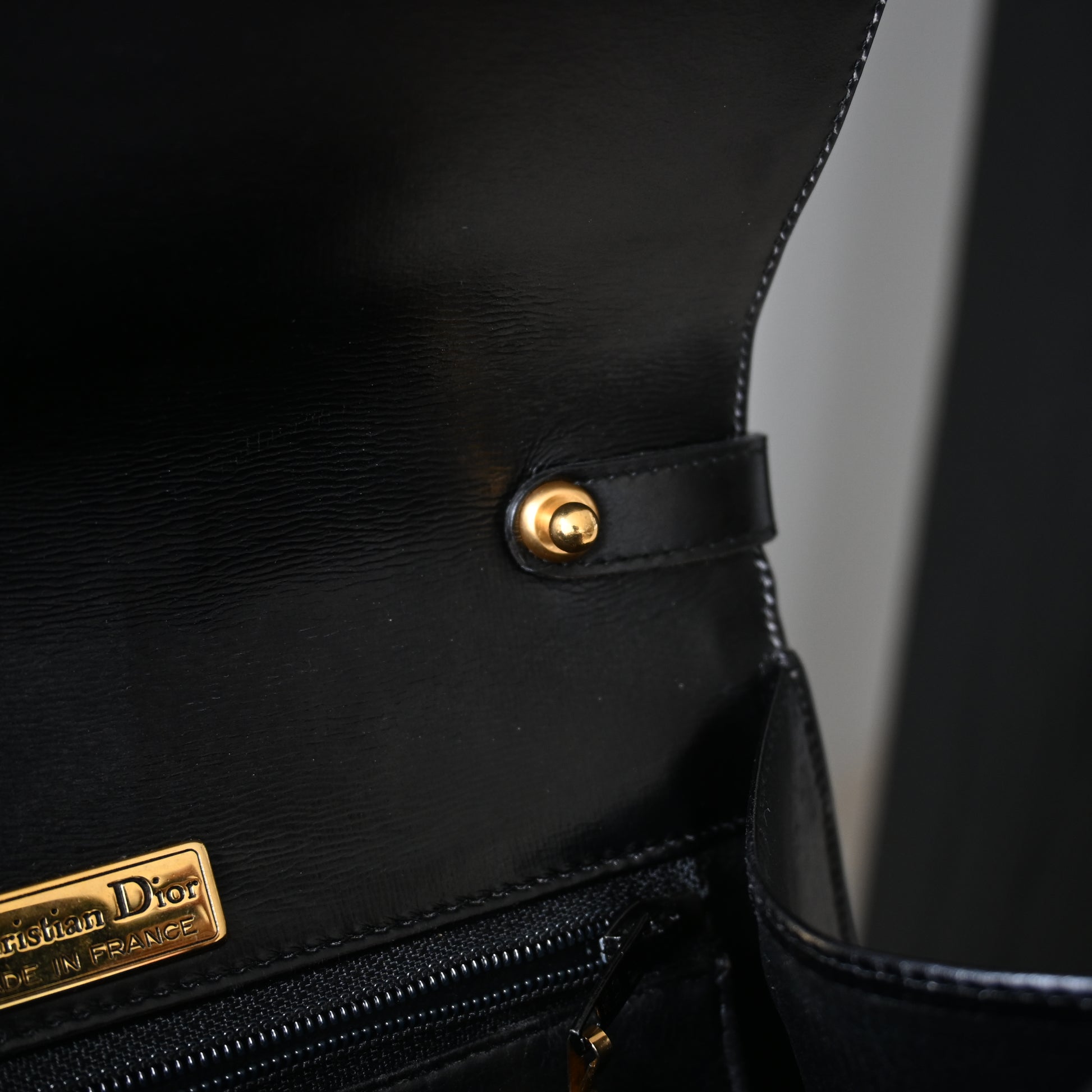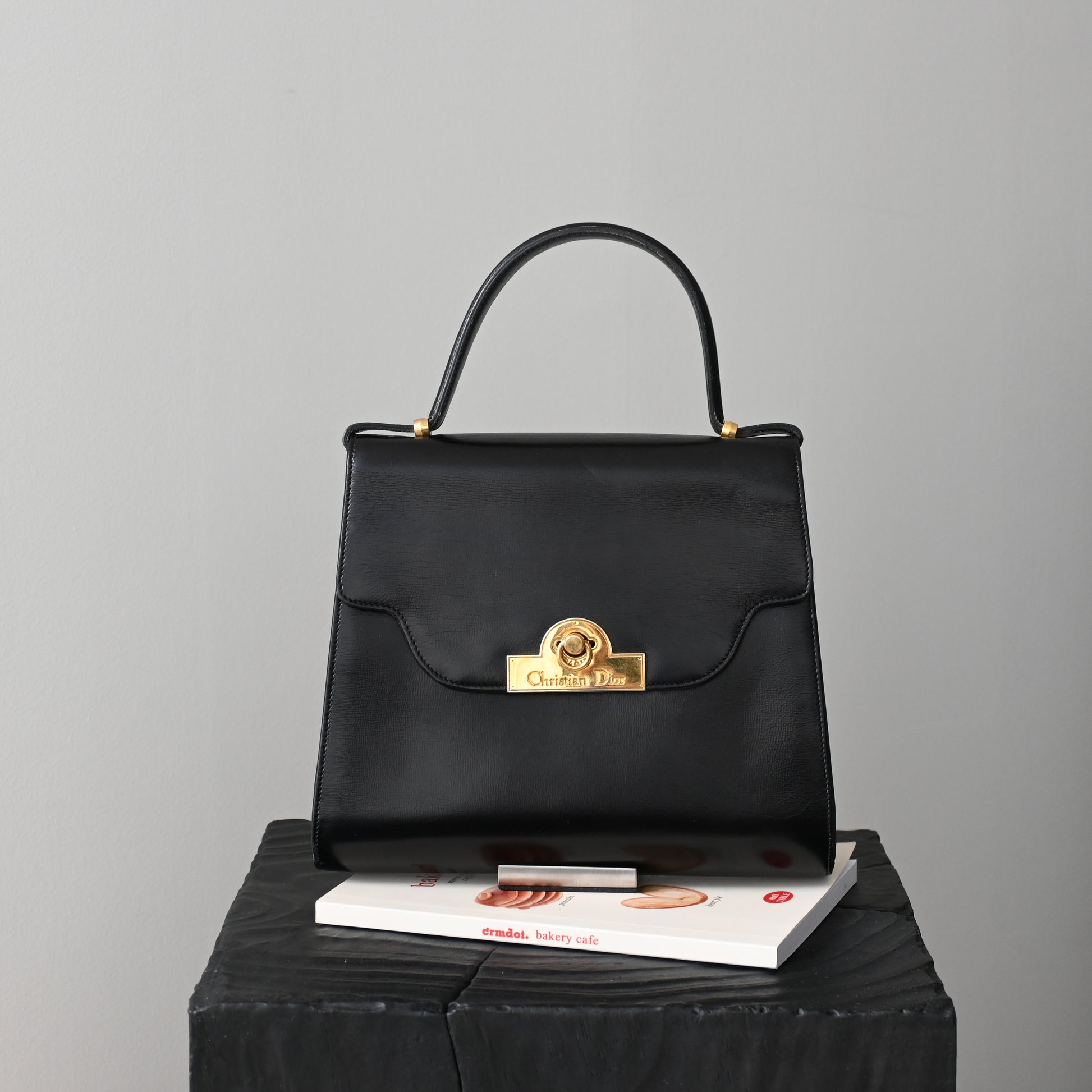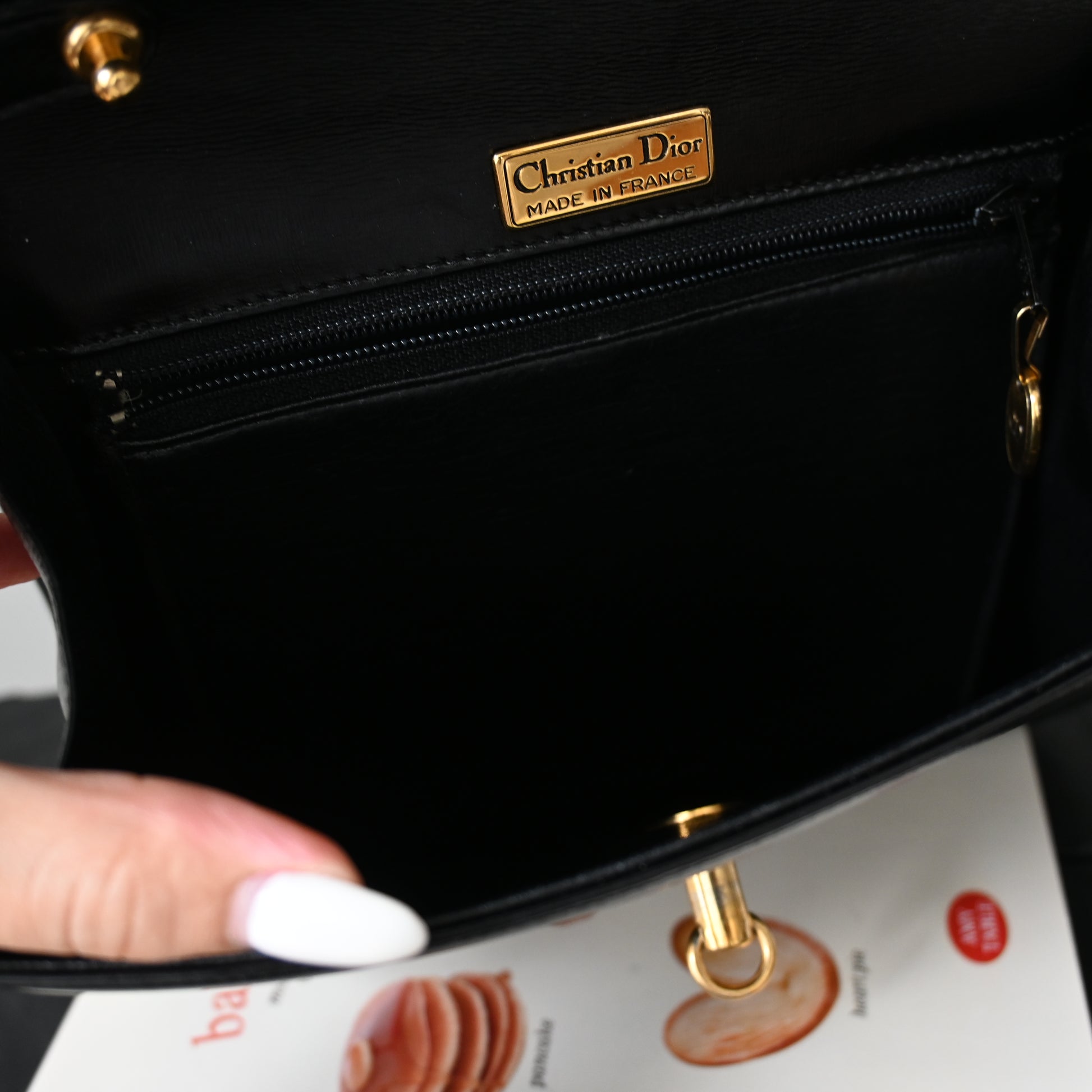 This Vintage Christian Dior Top Handle is pure "Old Money" vibes.The real star is that chunky gold hardware on the flap. It features the classic "Christian Dior" engraving, acting like a piece of jewelry for the bag itself. Total vintage goals!