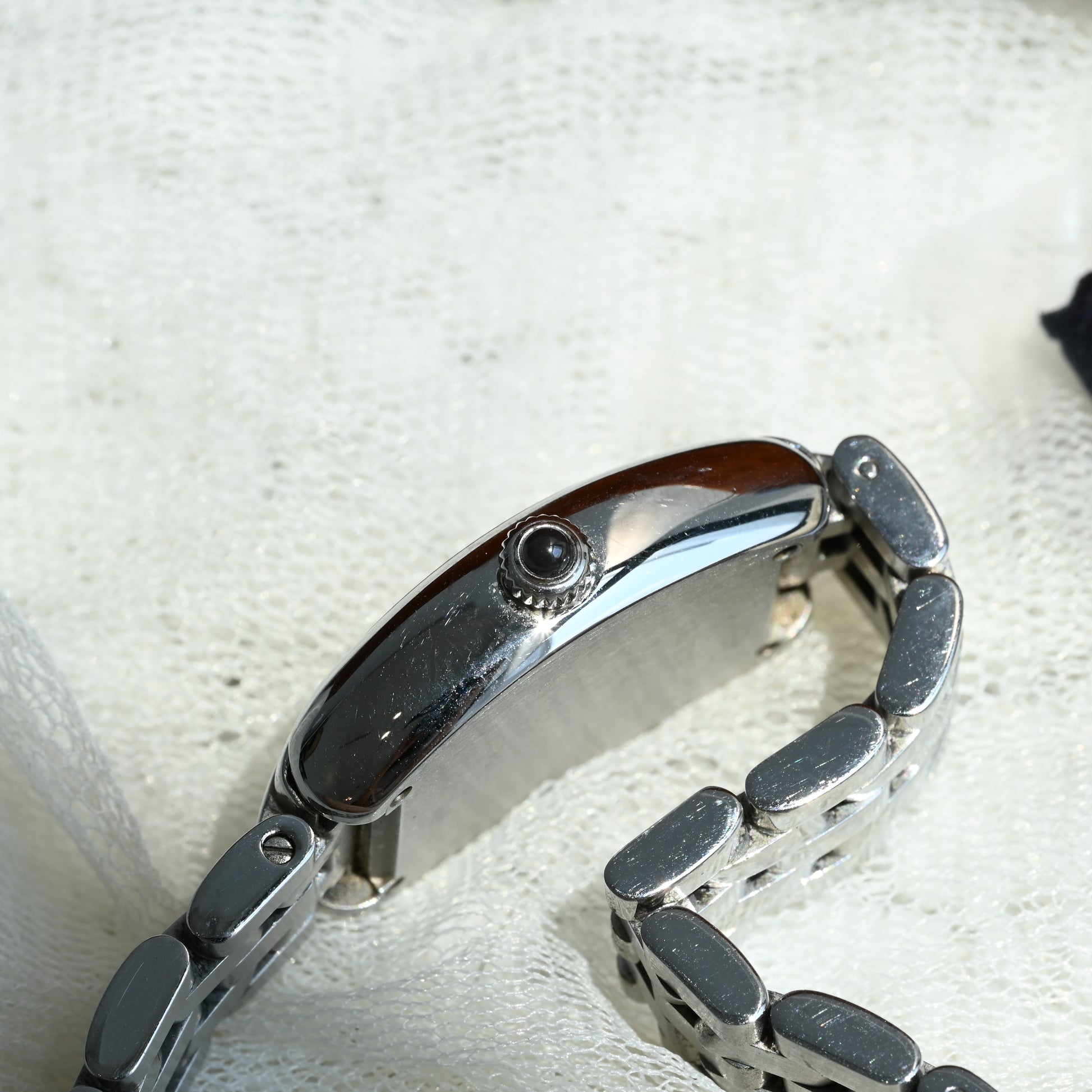 Featuring bold Art Deco numerals and an intricately embellished center dial set with shimmering diamonds, this timepiece exudes refined elegance — beautifully complemented by a high-polish steel bracelet.