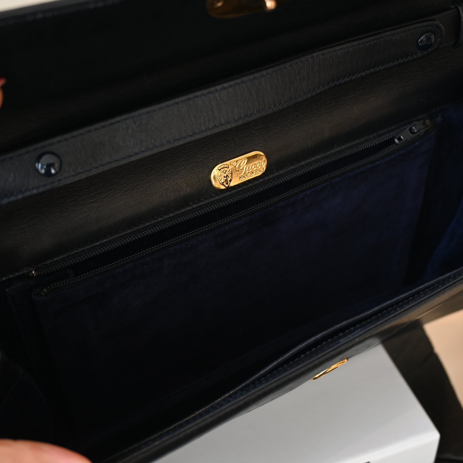 Gucci Turnlock G Navy Leather Bag