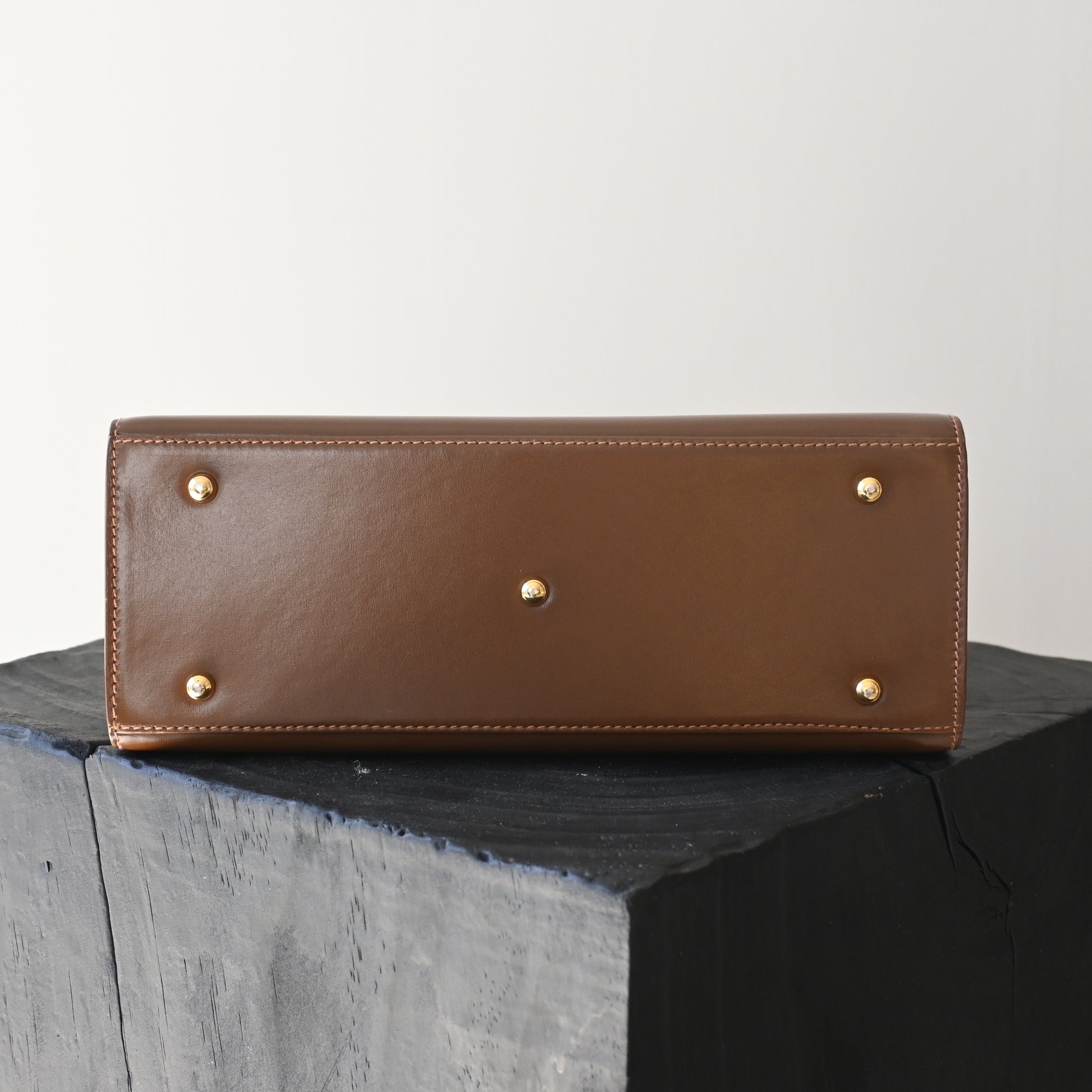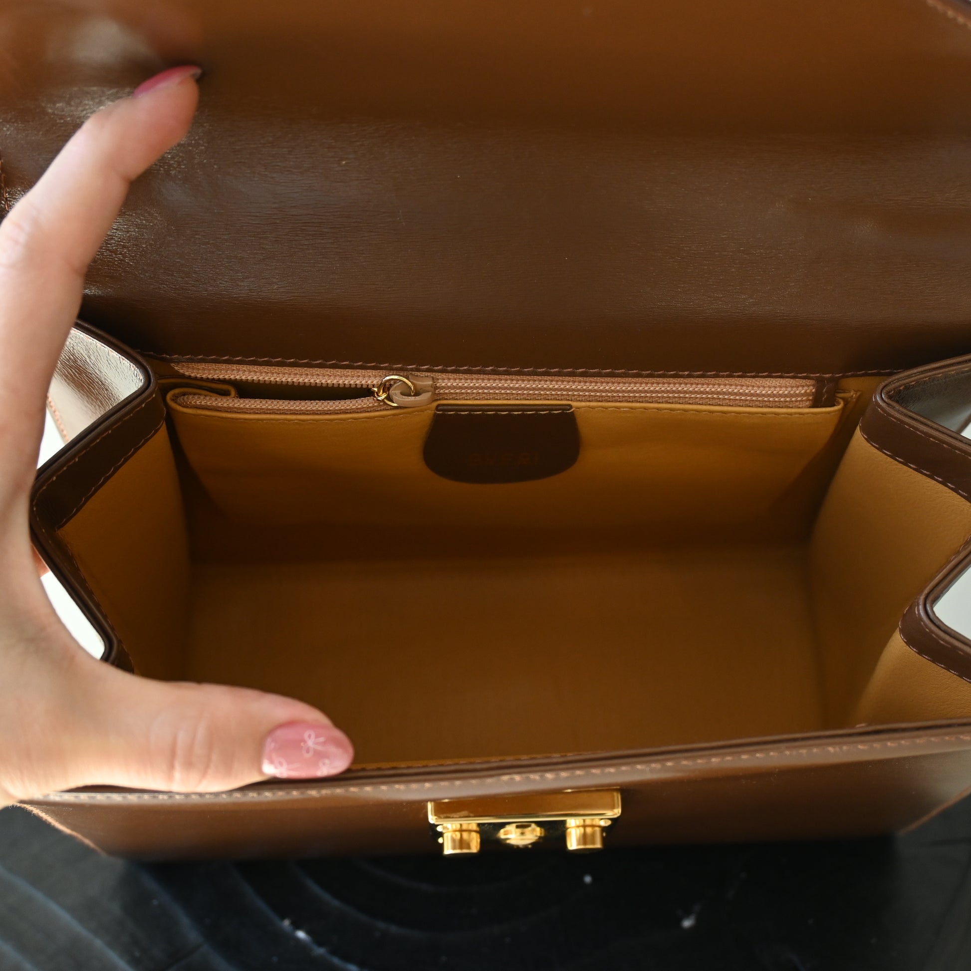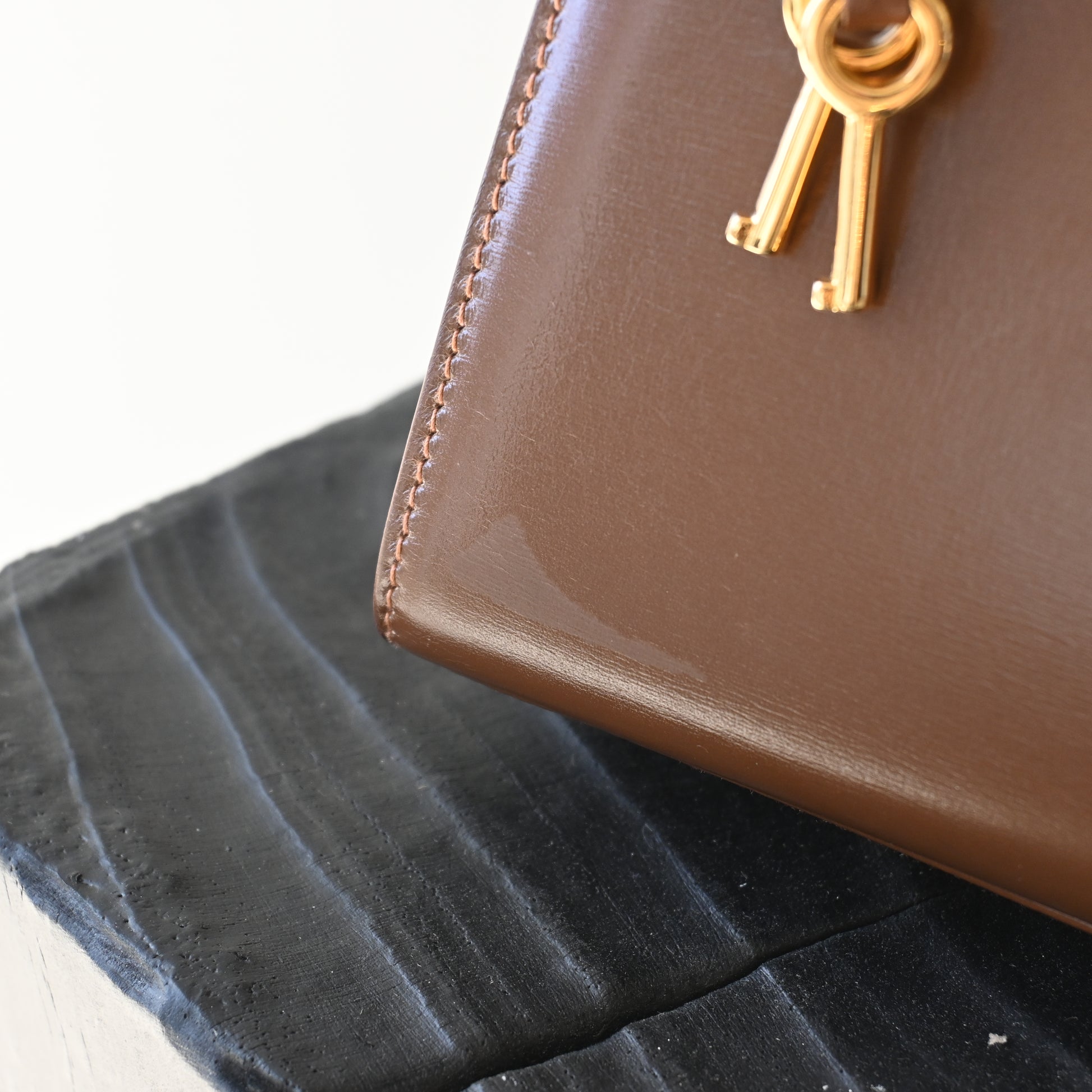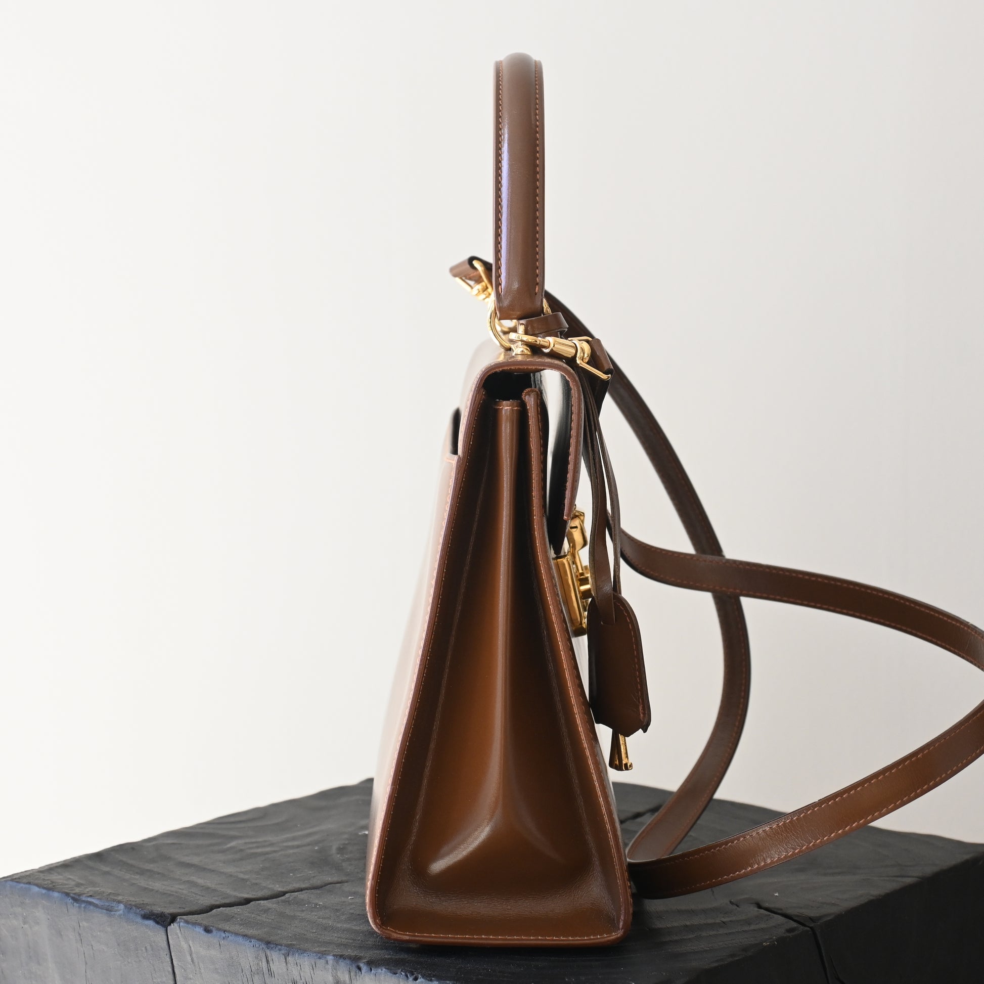 A timeless icon from Gucci’s vintage era, the Old Gucci Lady Lock Kelly Bag embodies classic elegance and refined craftsmanship. Crafted from smooth structured leather in a warm brown tone, this sophisticated silhouette is accented with the signature Lady Lock gold-tone closure for a polished finish.