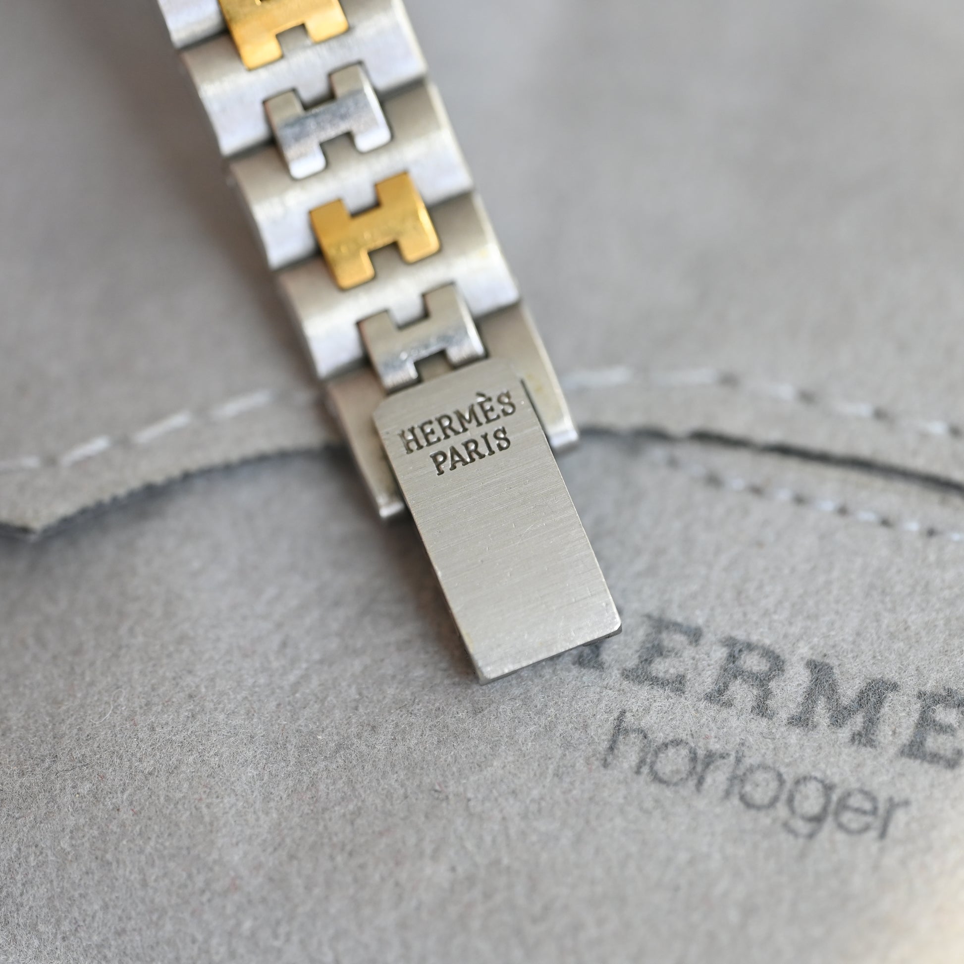 The watch features a sleek case paired with a clean, serene dial that reflects Hermès’ restrained yet distinctive aesthetic. Its minimalistic face offers easy readability while exuding an aura of quiet refinement. Accented with a finely crafted bracelet or strap (depending on variant), the overall look strikes the perfect balance between dressy and everyday wear.