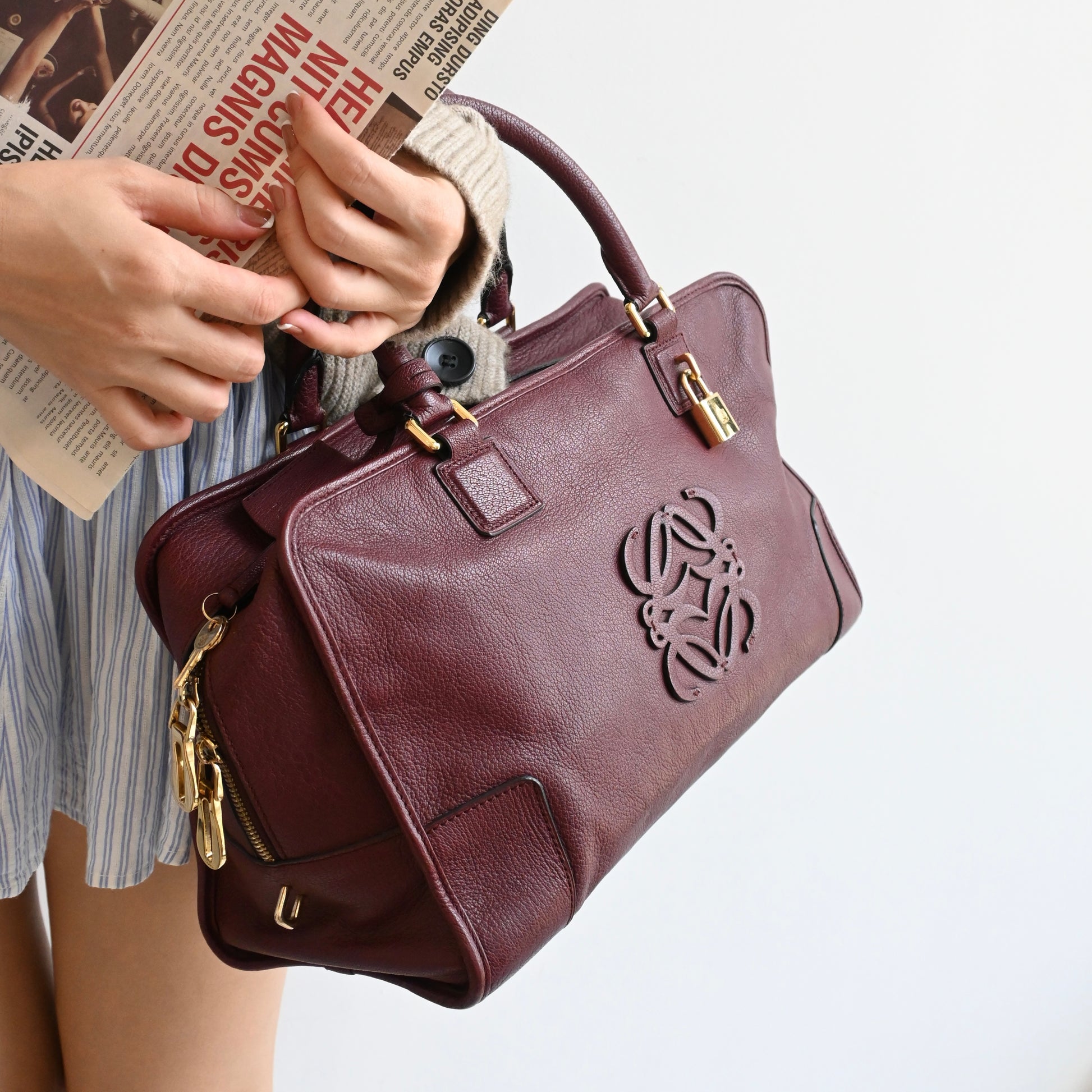 Meet the bag that’s equal parts vintage soul and modern edge. With its structured boxy silhouette, rich burgundy leather, and signature double top handles, the Amazona 34 is Loewe’s chic nod to timeless design — roomy enough for everyday, sleek enough for after-hours.
