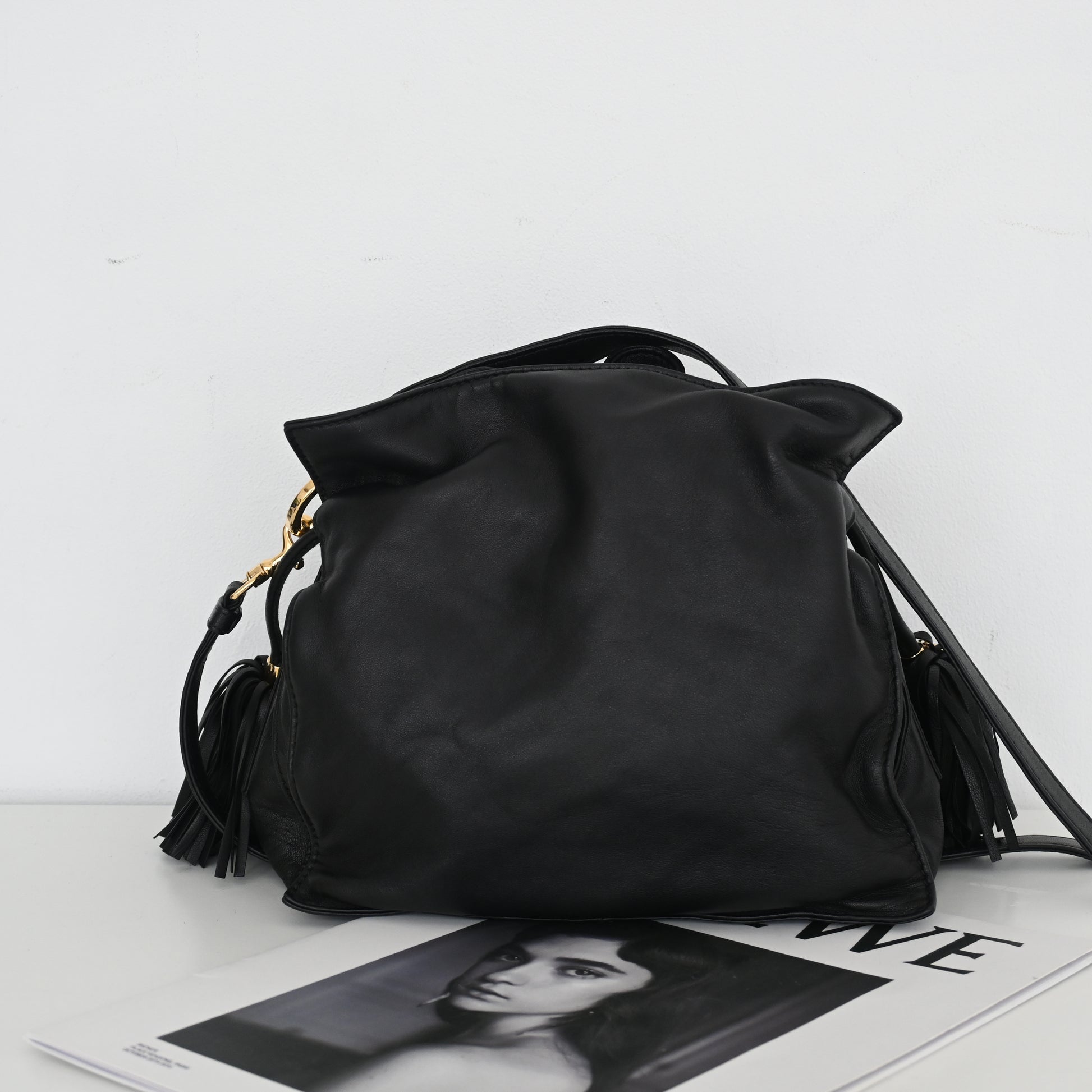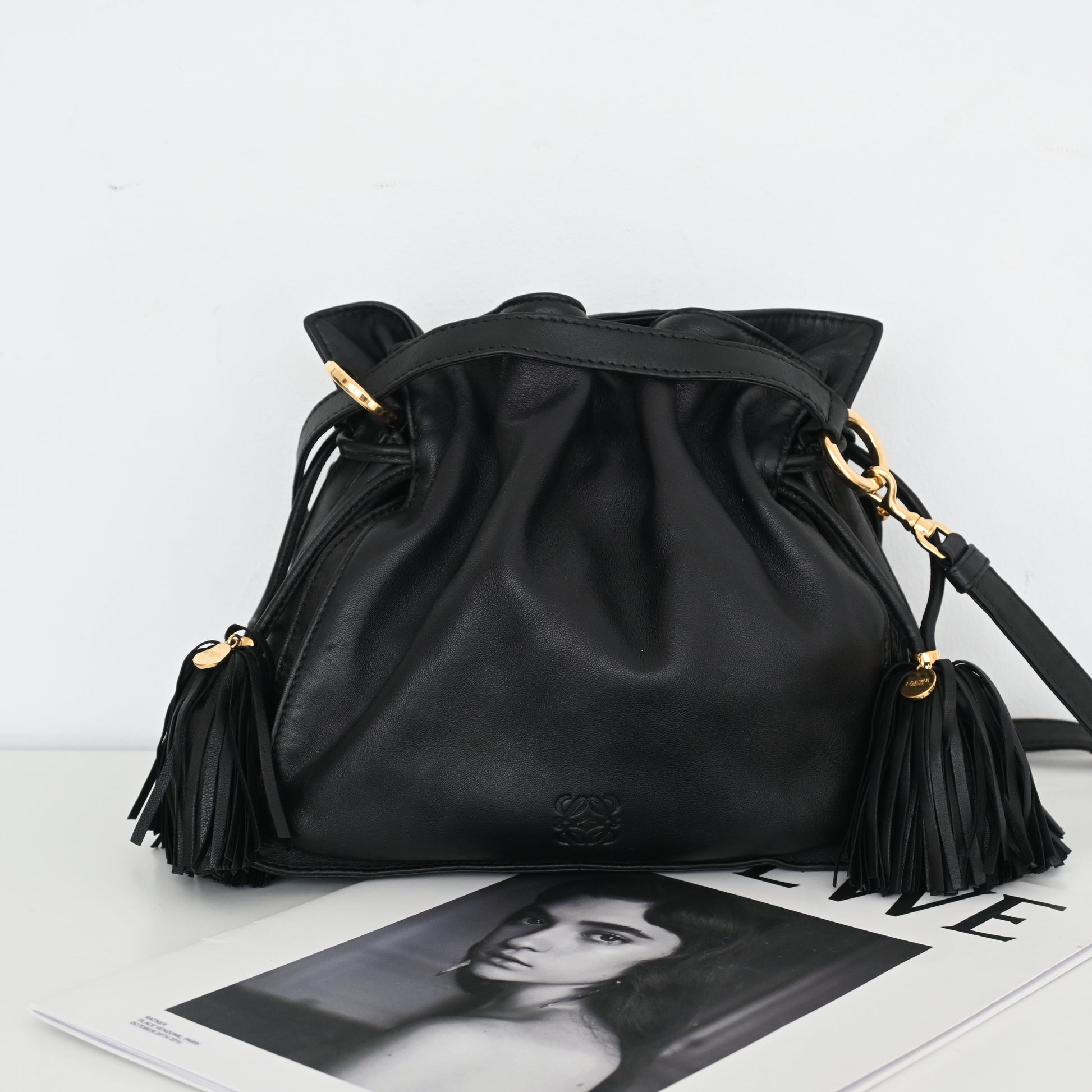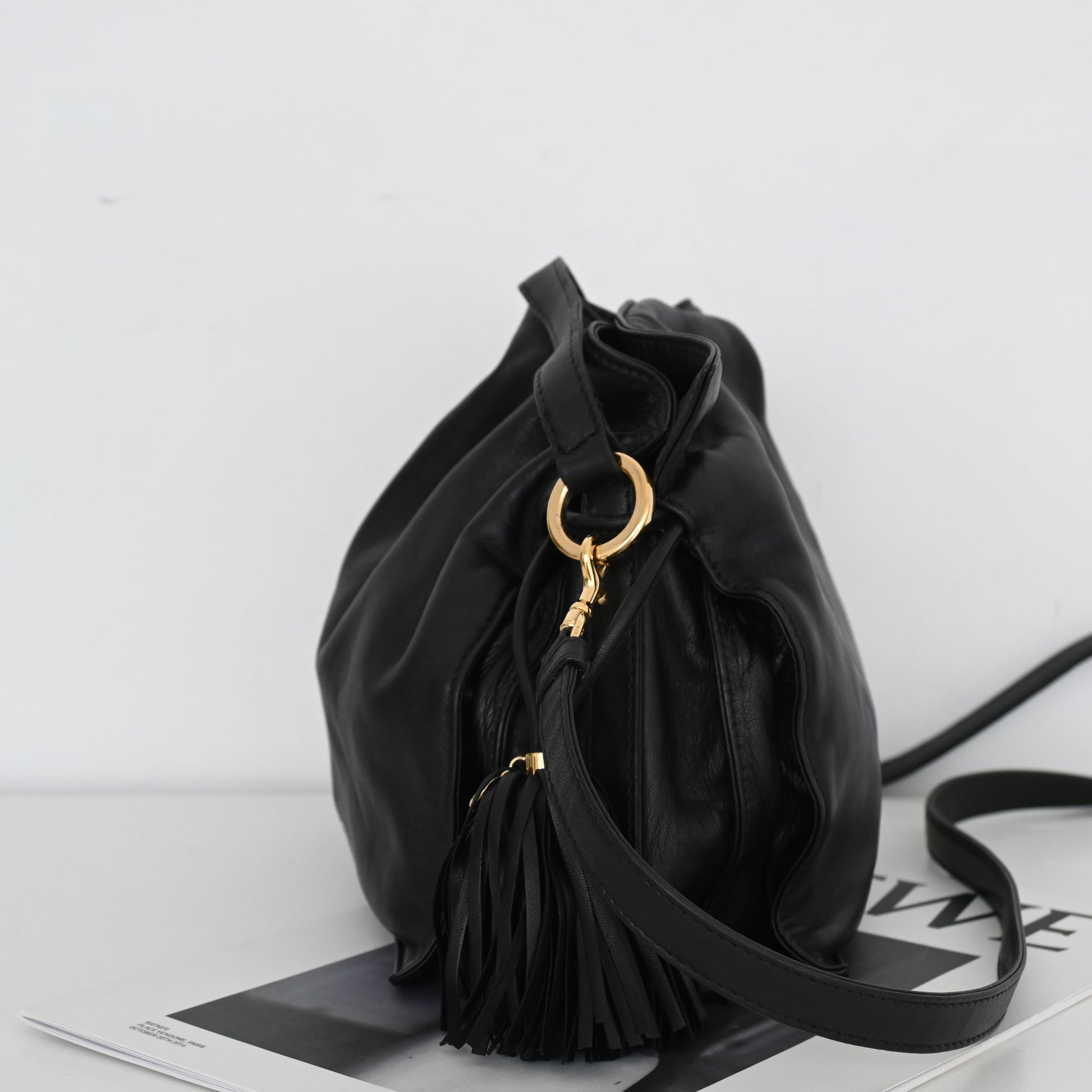 Handcrafted in supple nappa leather, its ultra-soft and pillow feel silhouette cinches closed with elegantly oversized knotted tassels—a signature detail that reflects Loewe’s artisanal heritage. Designed for versatility, it can be worn crossbody and over the shoulder.