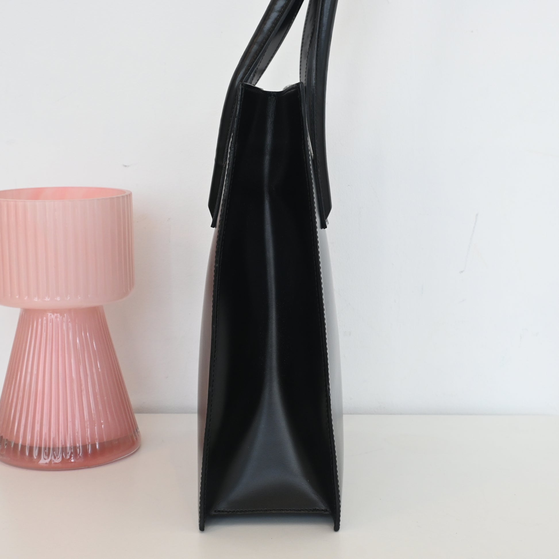 The spirit of the Panthère. This striking black leather tote embodies the sleek, fierce elegance of Cartier's iconic collection. The signature gold ring hardware captures the timeless, sophisticated edge of the Maison.