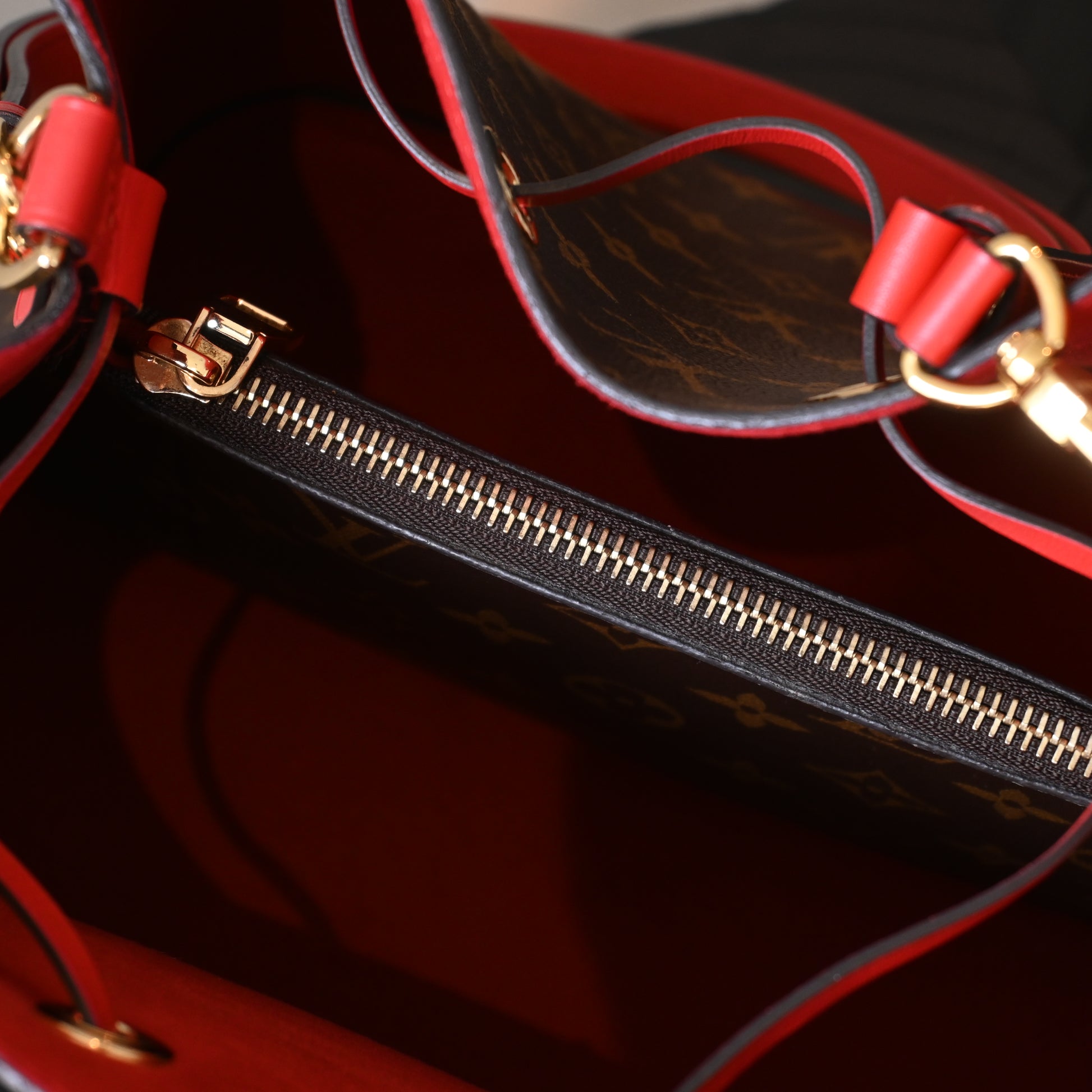 Crafted from signature Monogram canvas with smooth leather trim, it features a structured yet supple bucket shape that sits beautifully on the shoulder. The adjustable leather strap allows for comfortable crossbody or shoulder wear, making it effortlessly versatile for daily styling.