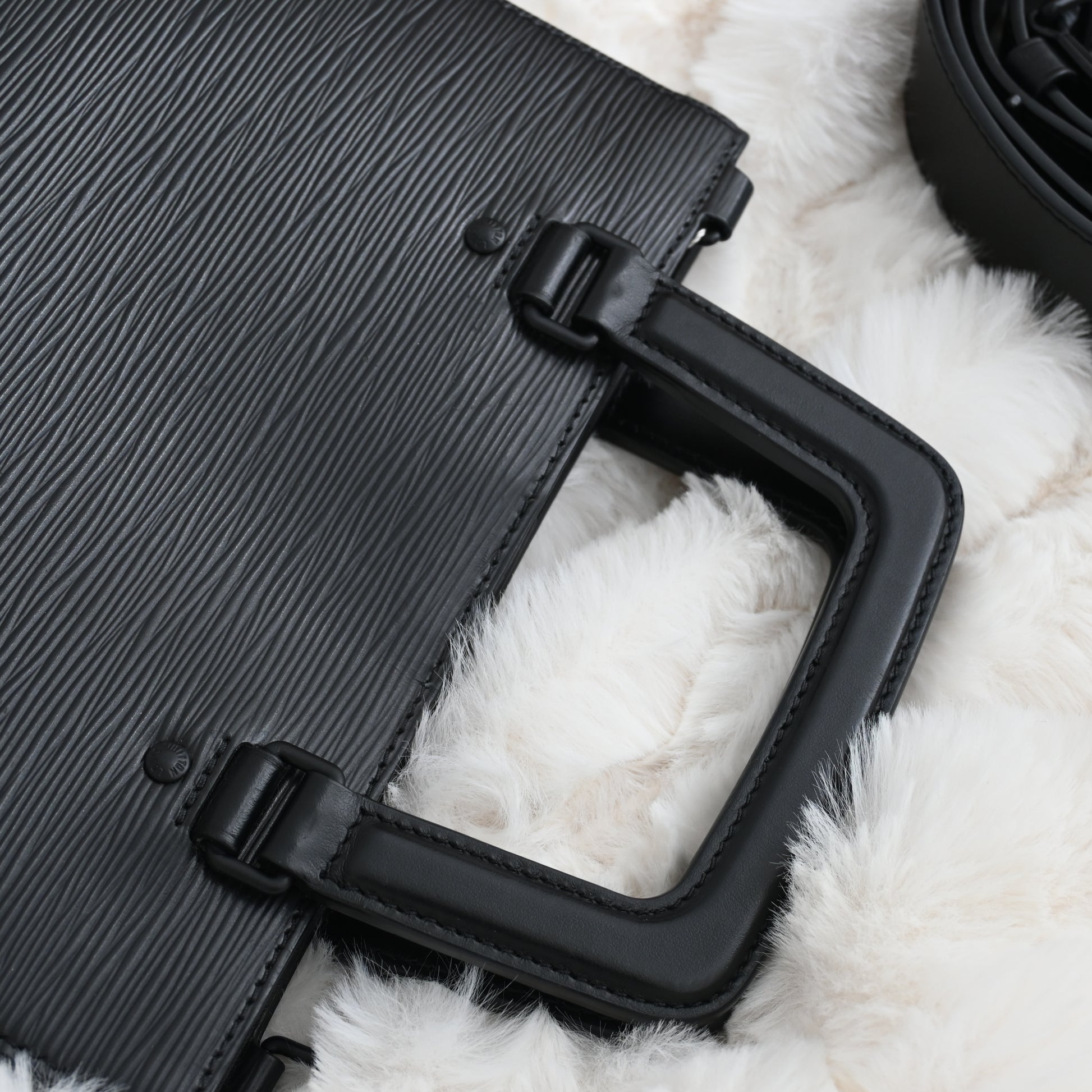 It comes with leather top handles and a removable leather strap, rocking oversized matte-black initials, perfect for shoulder wear.
