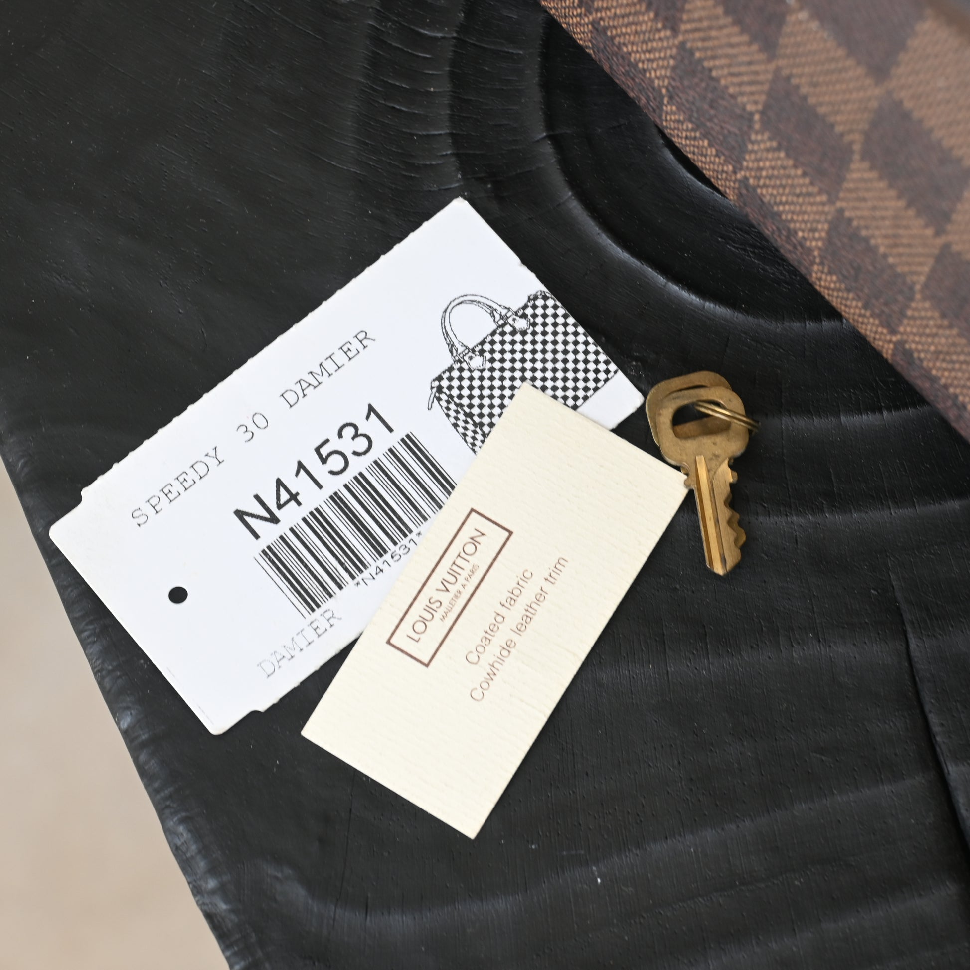 A timeless icon from Louis Vuitton, the Speedy 30 in Damier Ebene canvas is the perfect blend of elegance and practicality. Featuring the brand’s signature checkered canvas with smooth leather trims and gold-tone hardware, this classic handbag offers a spacious interior ideal for everyday essentials while maintaining a sophisticated silhouette. 👜✨