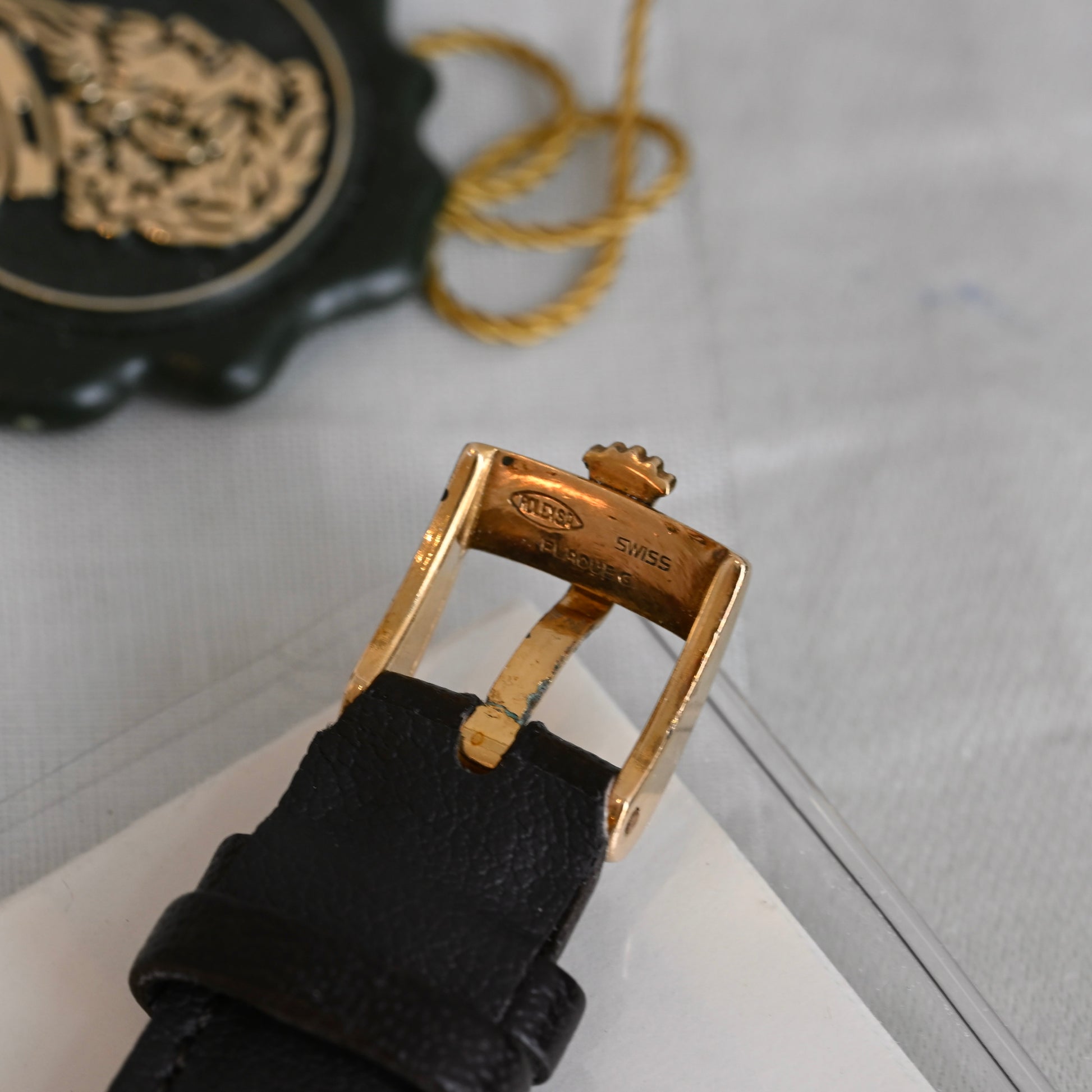 The Rolex Cellini from 1982 embodies understated elegance with its warm champagne dial and sleek two-hand display. Its fluted bezel in 18k yellow gold adds subtle texture, while the slim case profile ensure timeless sophistication for any occasion.