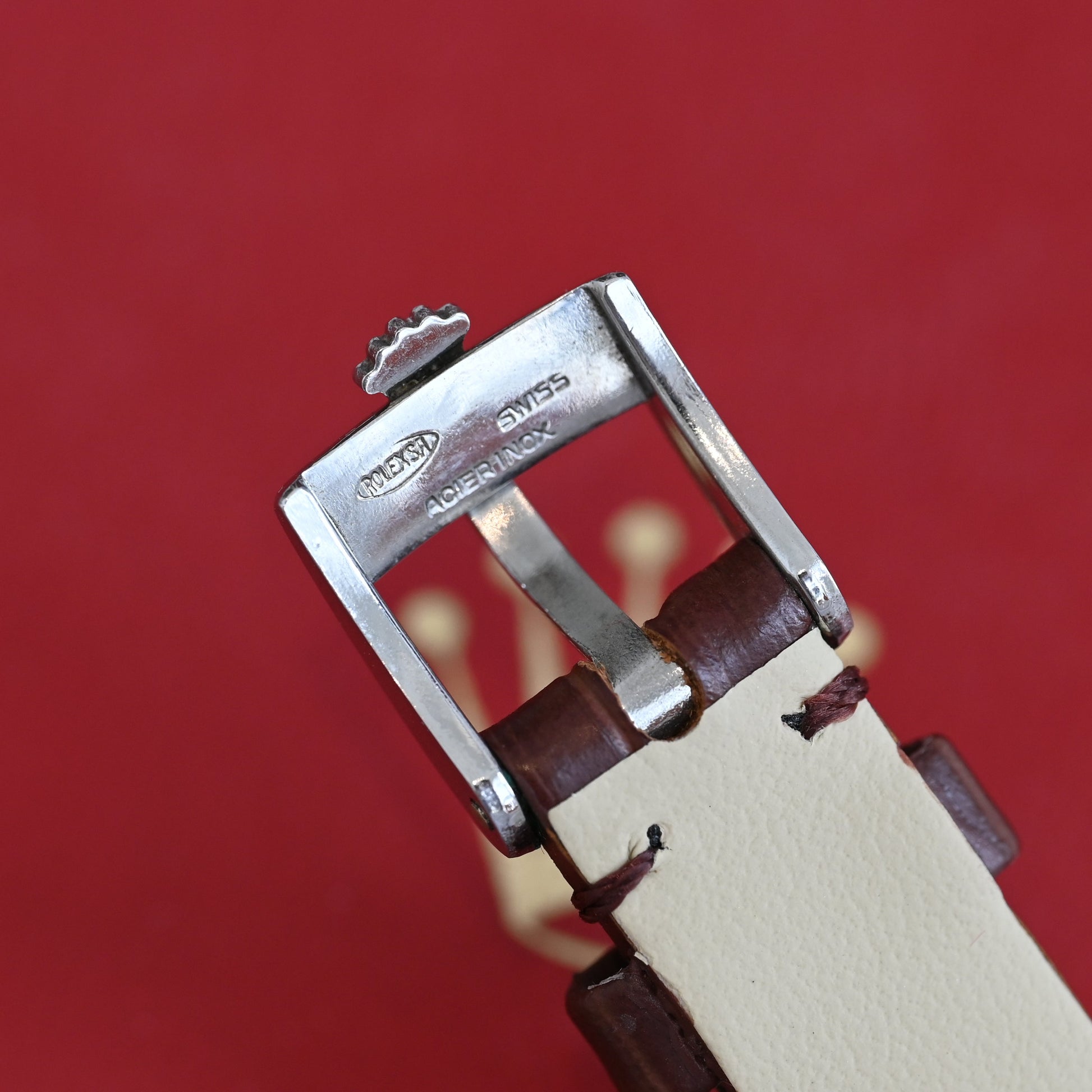 Paired with a brown leather strap, this Cellini carries a warm vintage character — perfect for collectors who appreciate rare 1970s Rolex dress pieces.