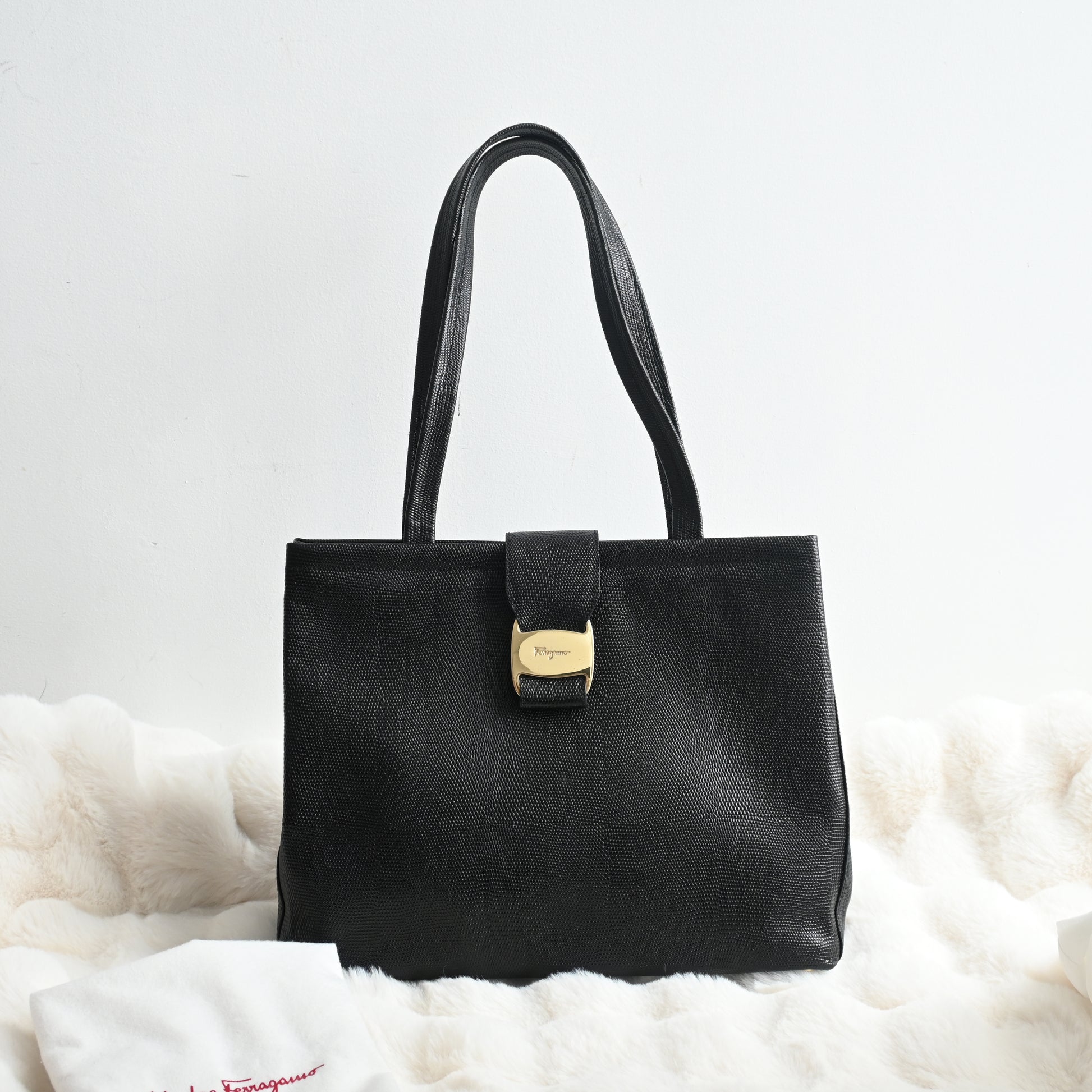 Salvatore Ferragamo Embossed Lizard Vara Tote