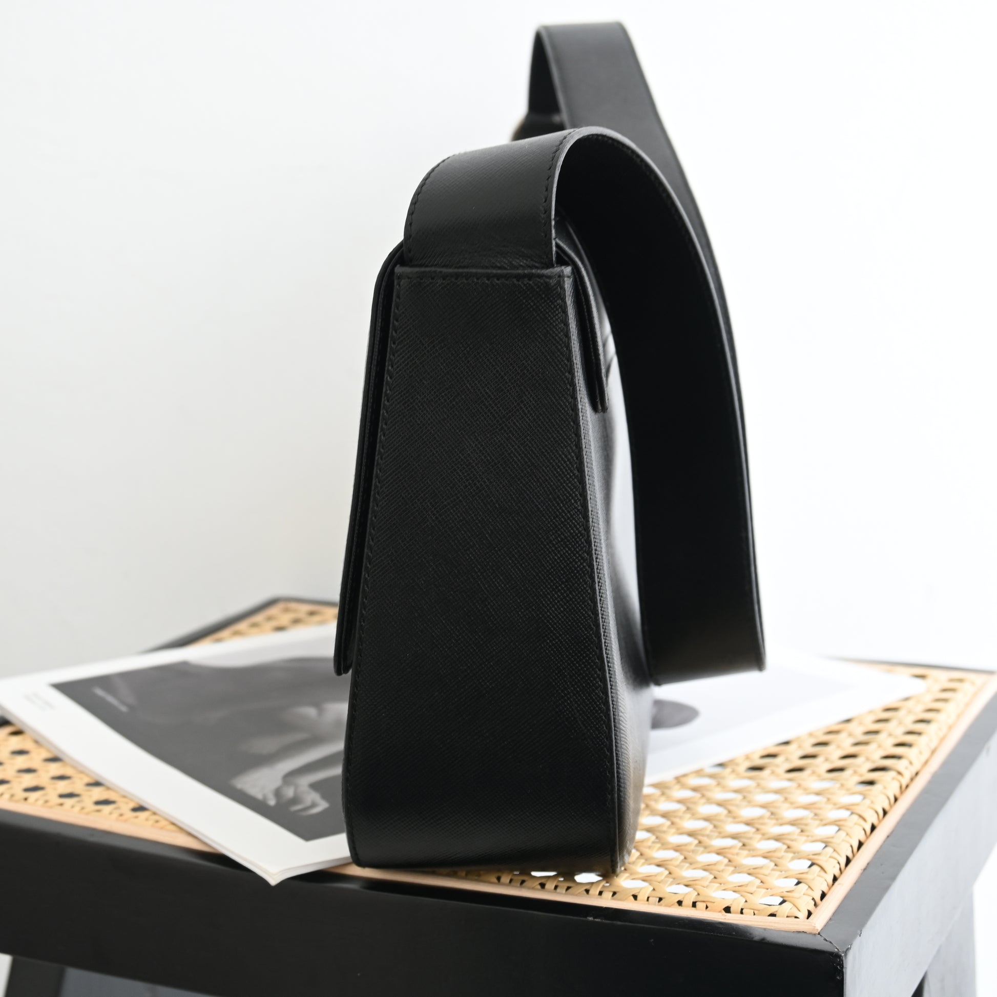 Angular yet fluid, soft yet structured. A silhouette that speaks in curves and quiet strength — Ferragamo sculpts this piece in rich calfskin, anchored by its signature Gancini clasp.