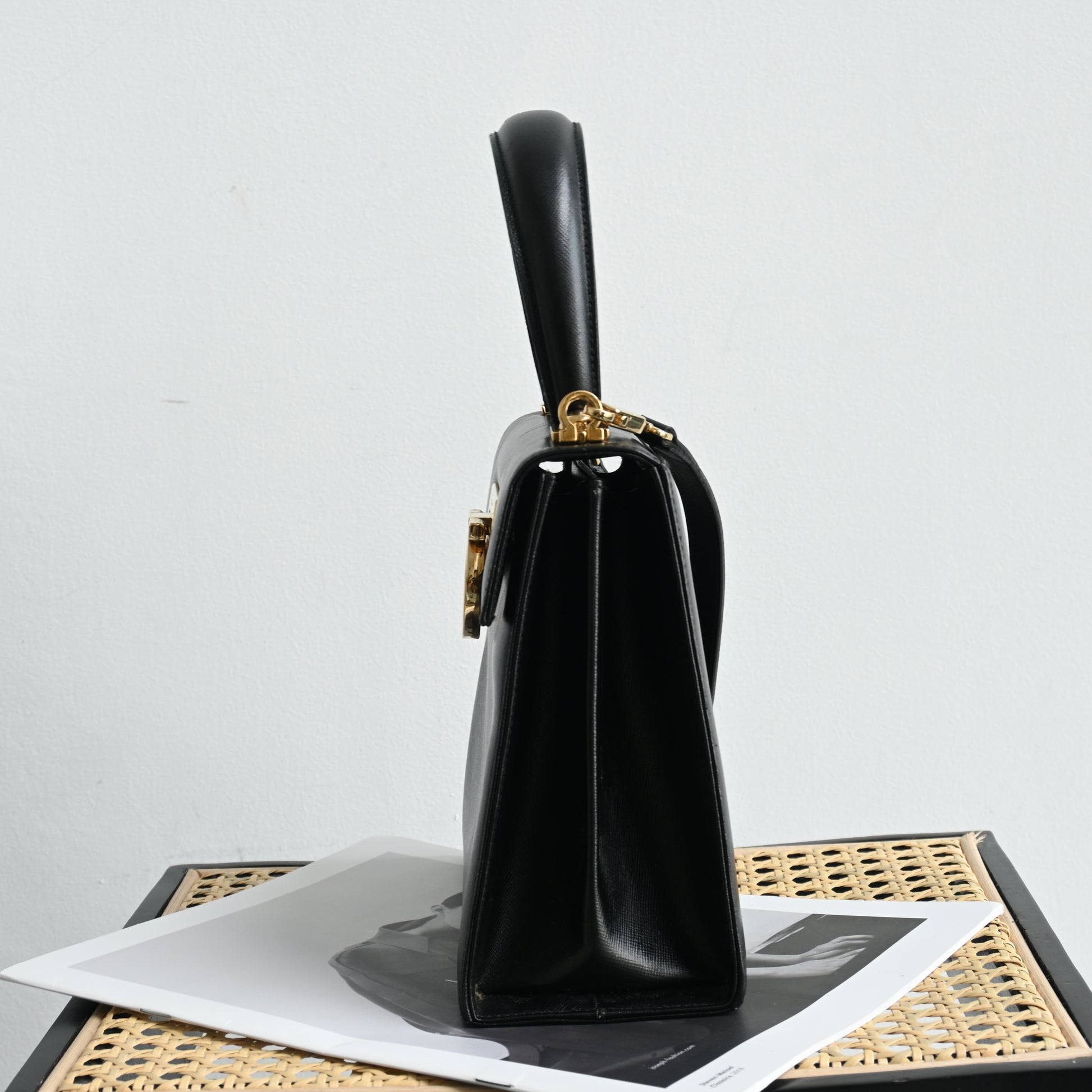 Boss energy in a bite-sized beauty. This Ferragamo babe means business, with a side of sass. Crafted from rich grained calfskin with statement gold detailing.