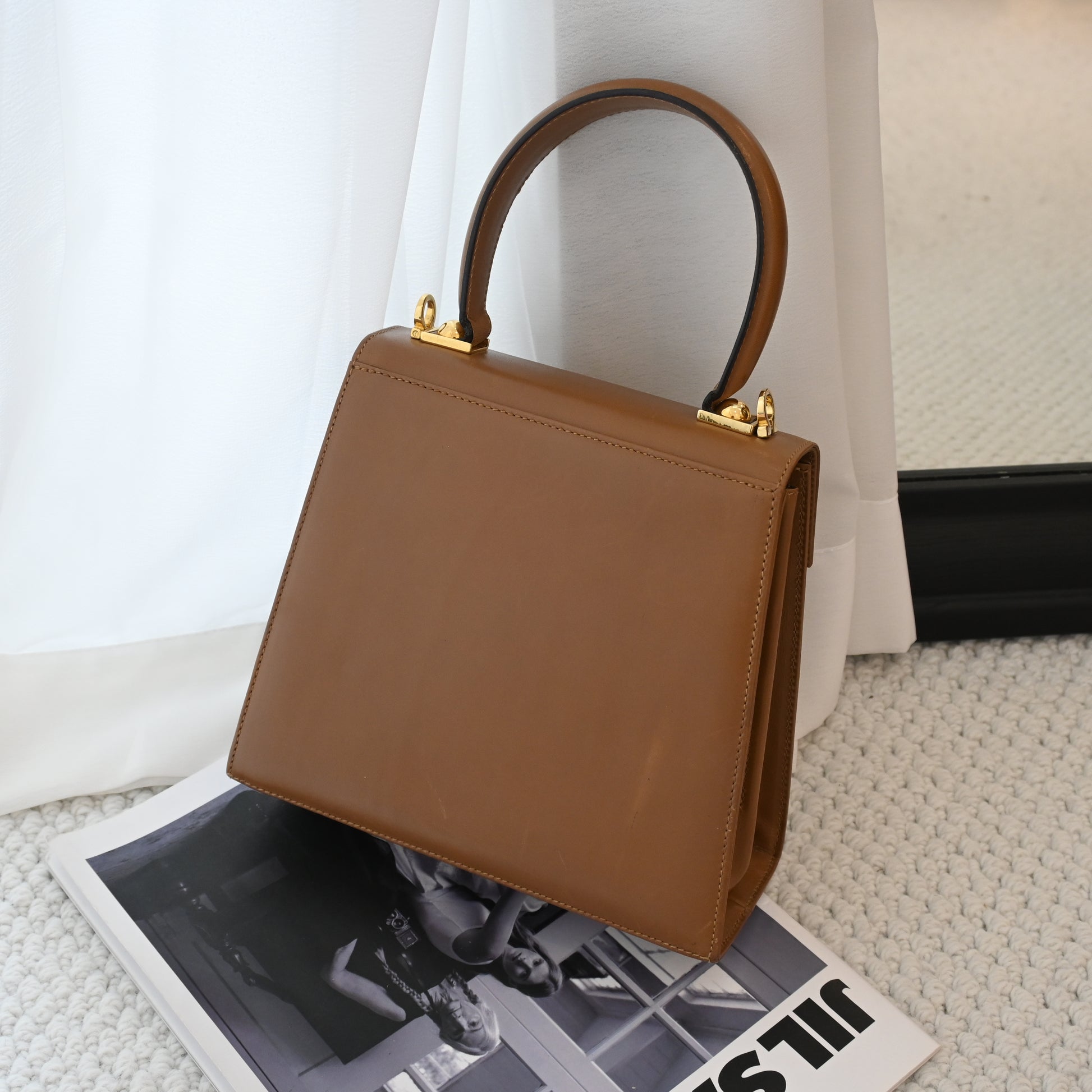 This bag features Ferragamo’s signature Gancini clasp — the brand’s classic double-hook logo inspired by the design of wrought-iron gate motifs at the historic Palazzo Spini Feroni in Florence. The Gancini motif has been a hallmark of Ferragamo accessories since the 1970s and symbolizes timeless Italian craftsmanship.