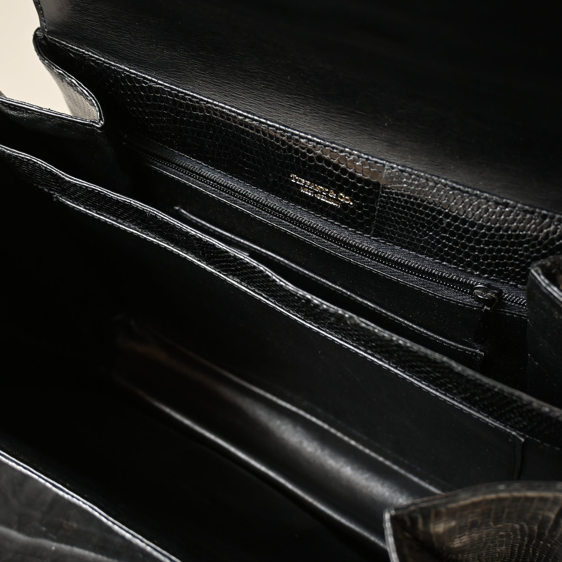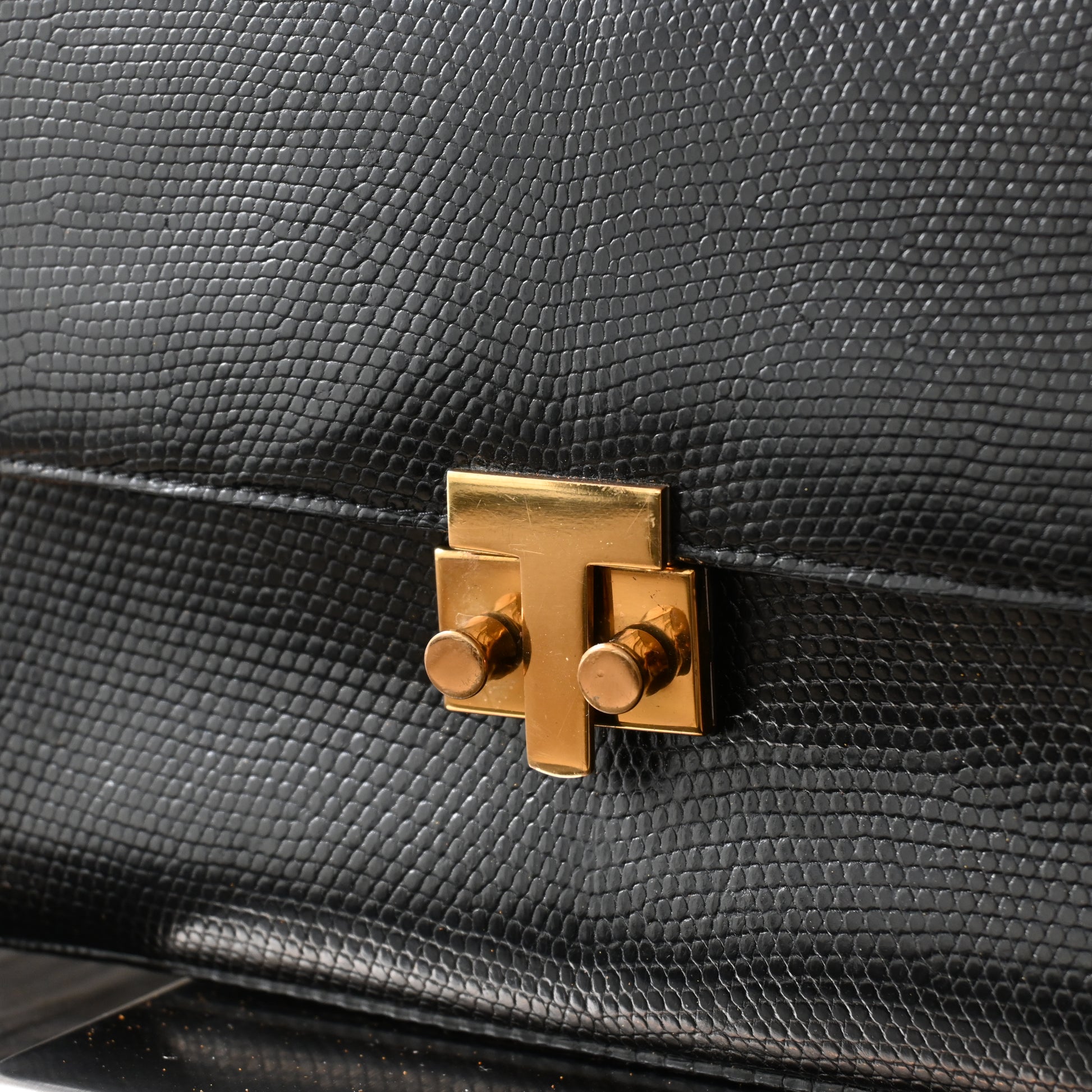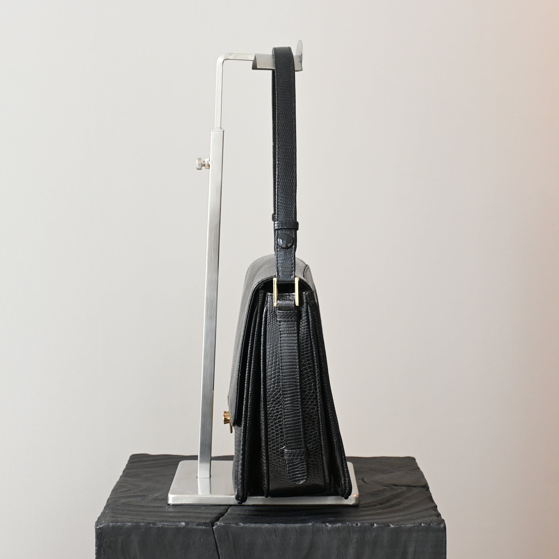 Crafted from beautifully textured lizard leather, this bag showcases a structured yet softly contoured silhouette that sits gracefully on the shoulder.
